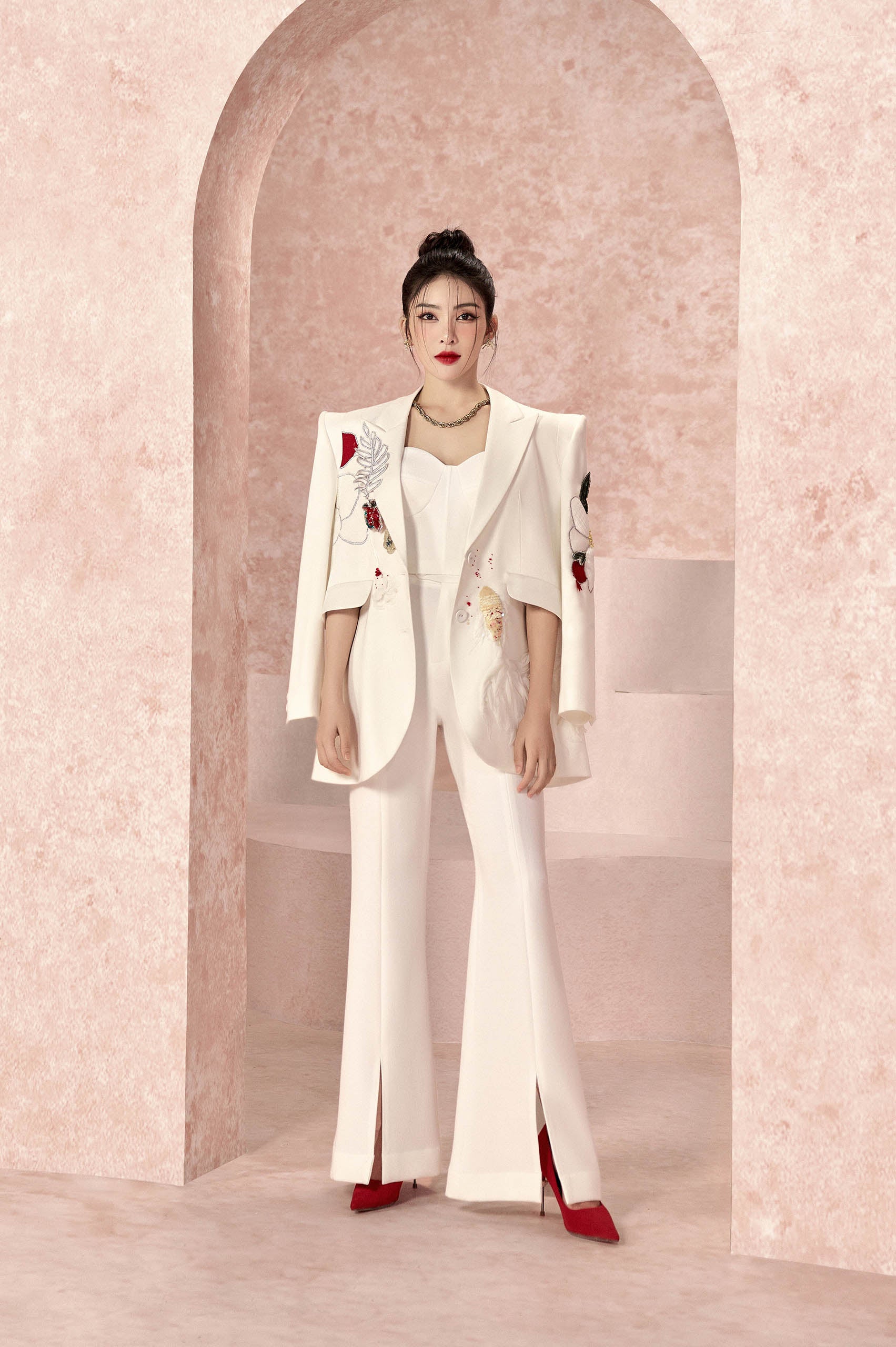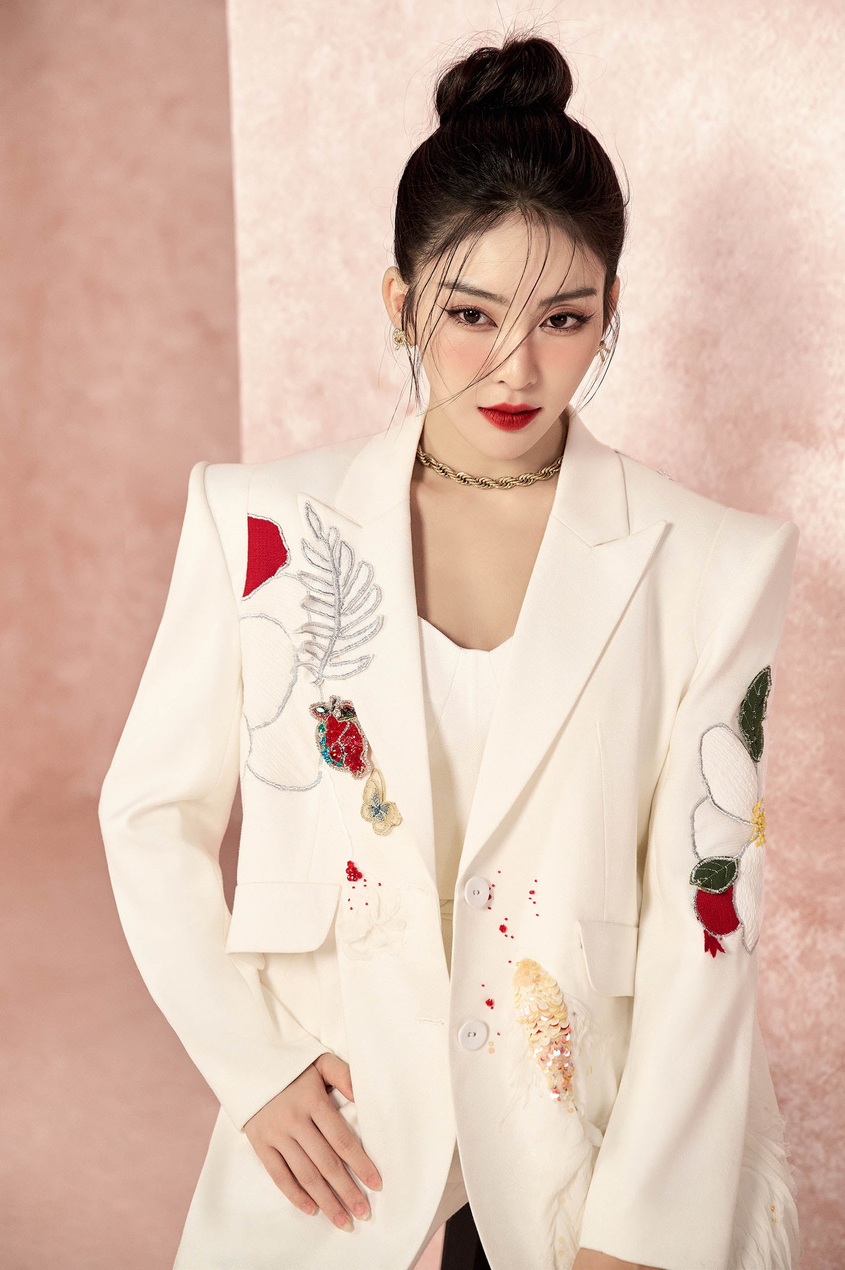 With the goal of winning over the fans of suits—a representation of luxury, elegance, and thoroughness for every occasion—Aromatic Set was created. The blend consists of a loose pair of slacks with a personality split point and a young, beautiful crop top corset design. Paired with the strong square-shouldered Blazer, which is embellished using handmade techniques with pomegranate branches, carp, and swallow patterns to create a noble, wealthy, bold spring atmosphere and convey the young man's vivacious mood. Ladies, be ready for a fortunate new adventure.