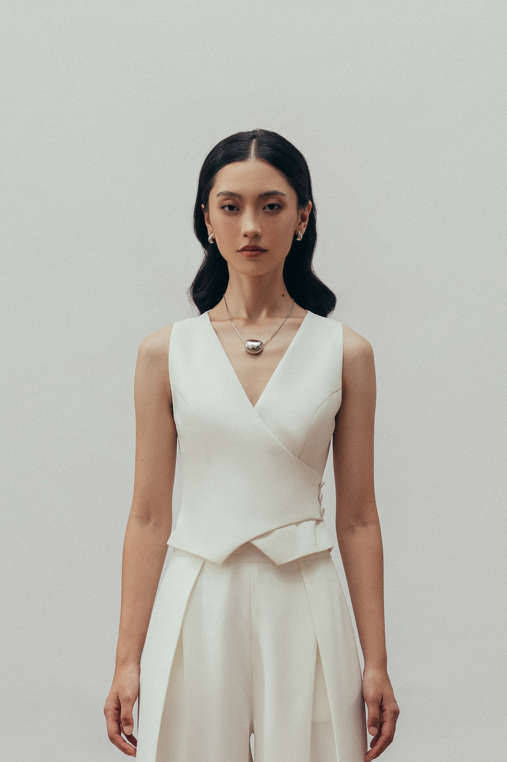 Material: Twill fabric with a slight drape, wrinkle-resistant, smooth texture. Color: White. Mix & Match: Easily paired with wide-leg pants, skirts, or a blazer for versatile and stylish looks.