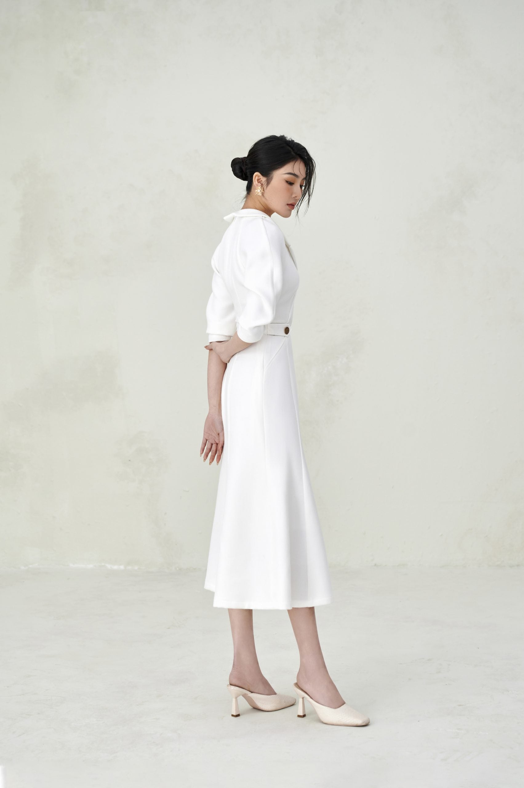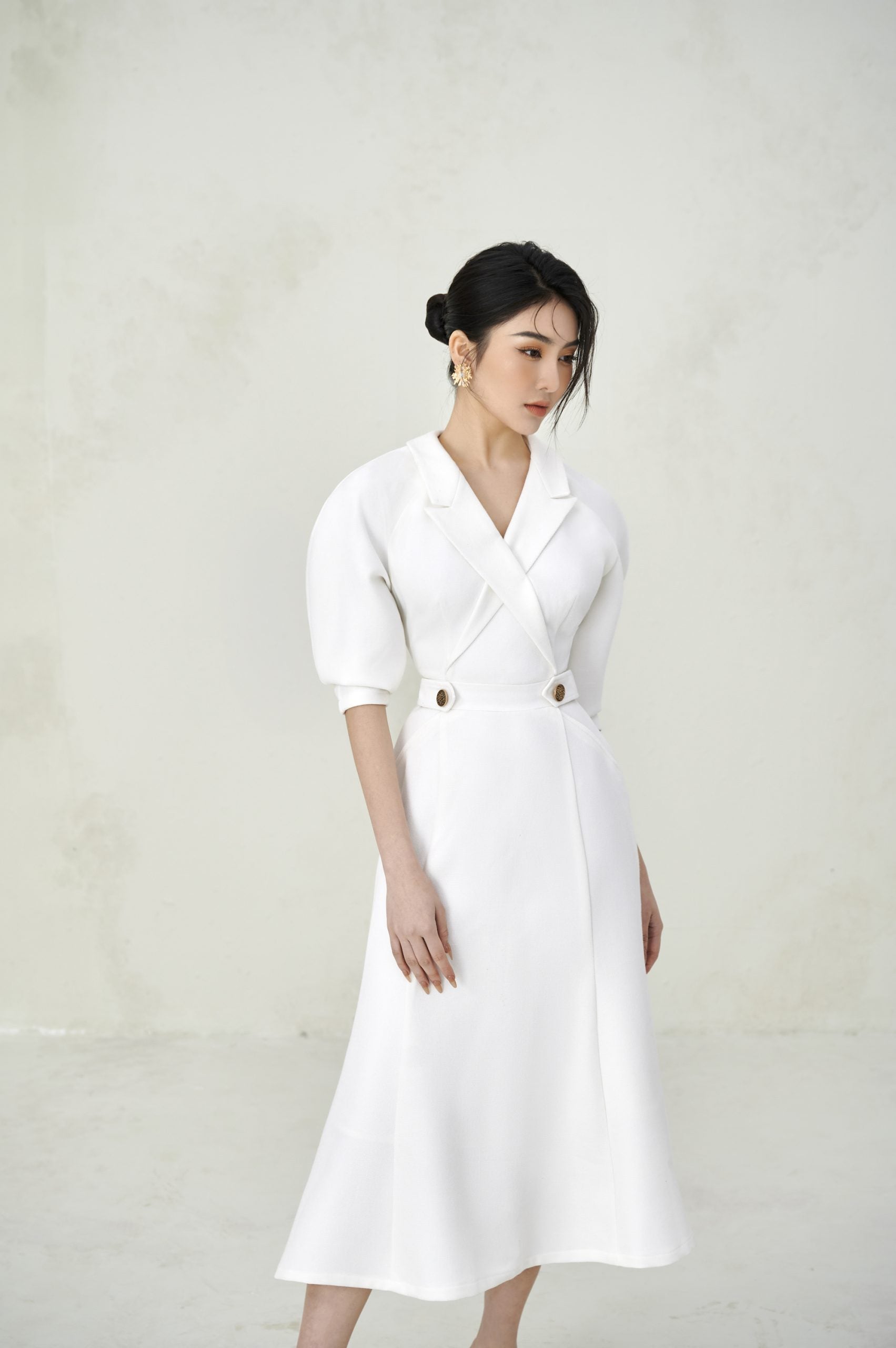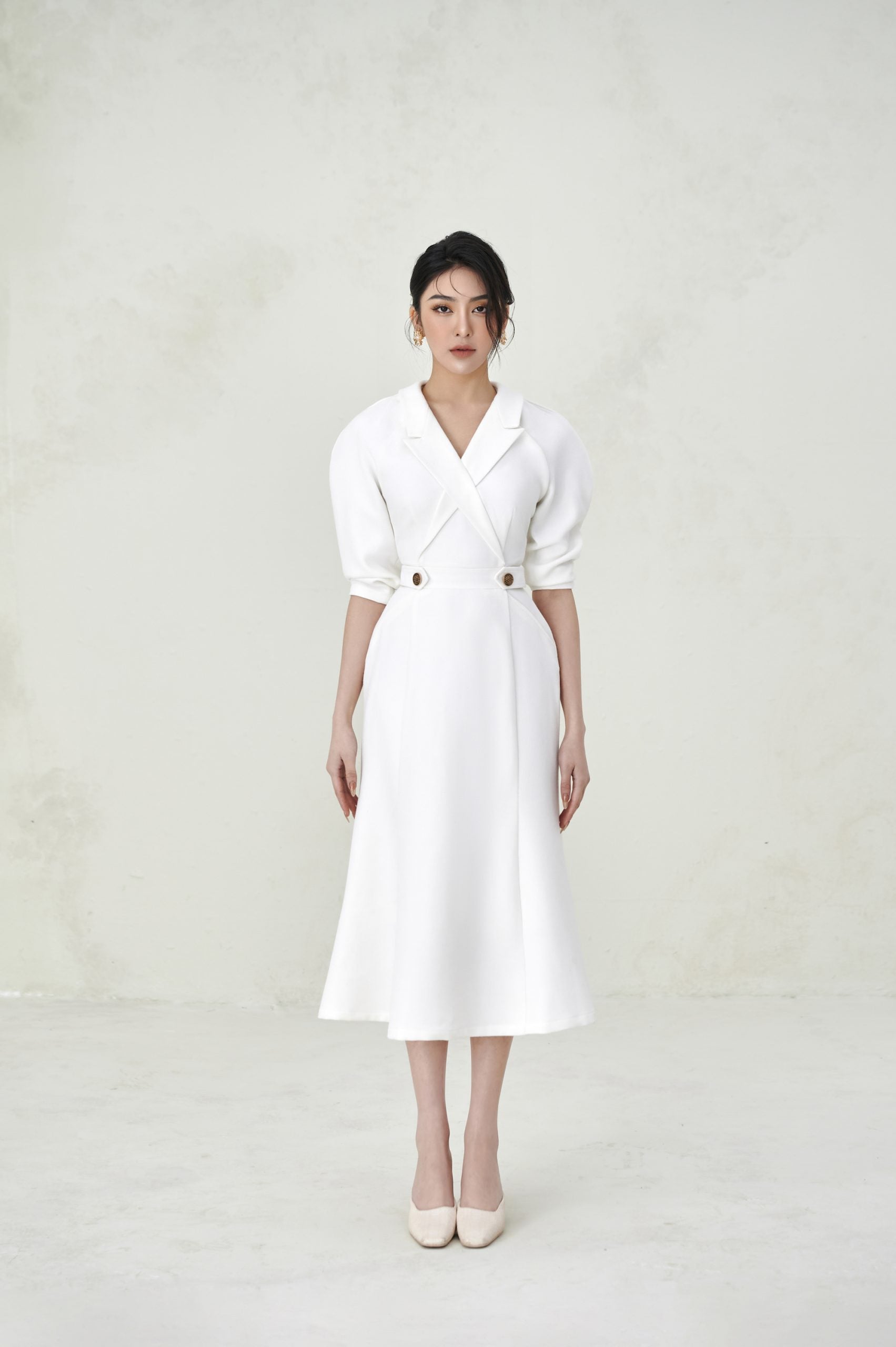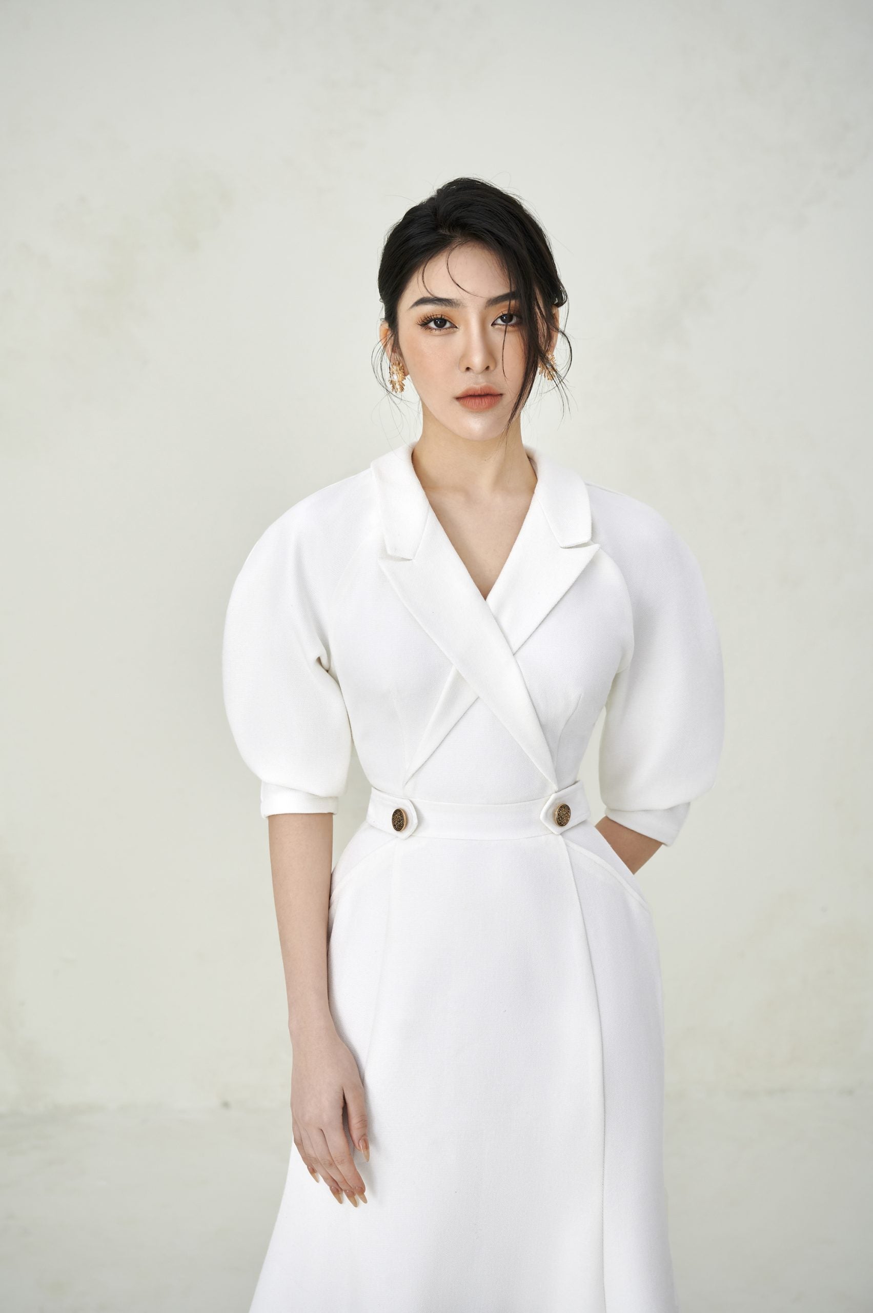 The complete inspiration for L'ALLÉE to create Ava Vest Dress is the beauty of modern office girls full of energy. Not being confined in the usual set of casual pants and shirts but still exuding a brave and confident aura is what Ava Dress brings to the wearer. Ava Vest Dress has a cross-neck vest, a light fishtail silhouette, gentle accents on the raglan sleeves combined with a thick, lightweight Twill fabric made from many twill weaves, making the design honor the muscle structure.