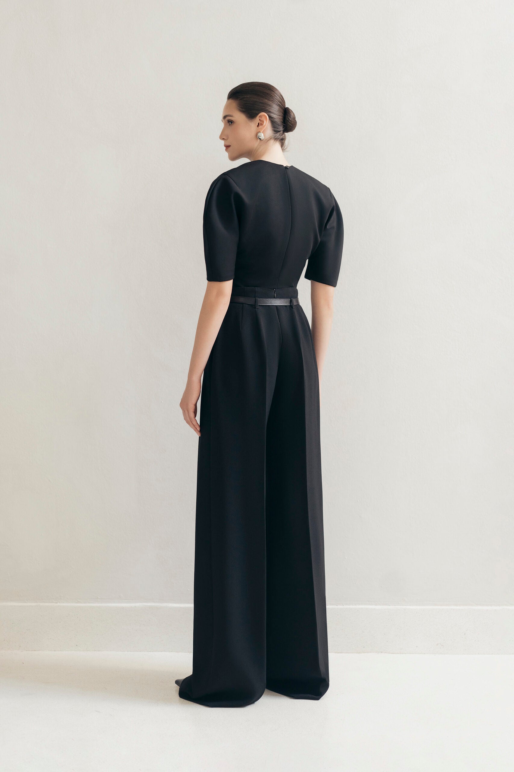 These wide-leg trousers present a modern and comfortable look, featuring a unique side pleat design paired with an exclusive leather belt, creatively tied for an impressive appearance. The soft and pleasant fabric ensures comfort while allowing for easy coordination with a variety of tops, making them ideal for both work environments and casual outings. They can be effortlessly styled with blazers, shirts, or blouses to create diverse looks.