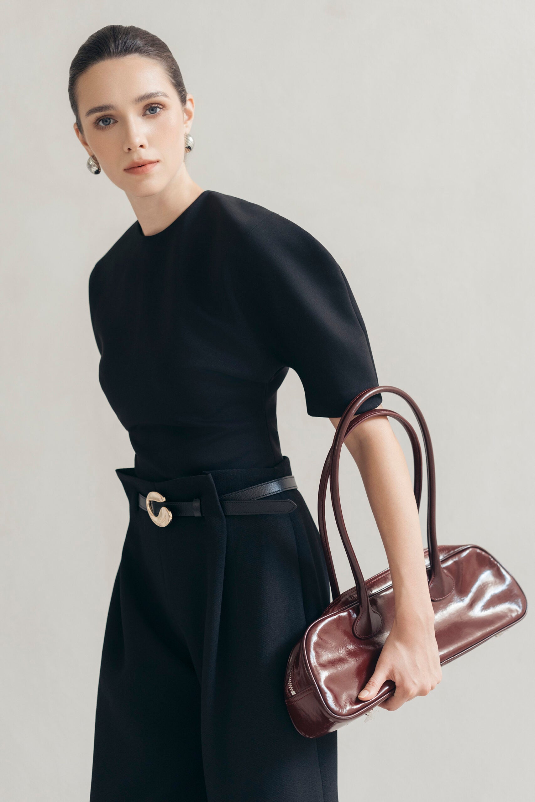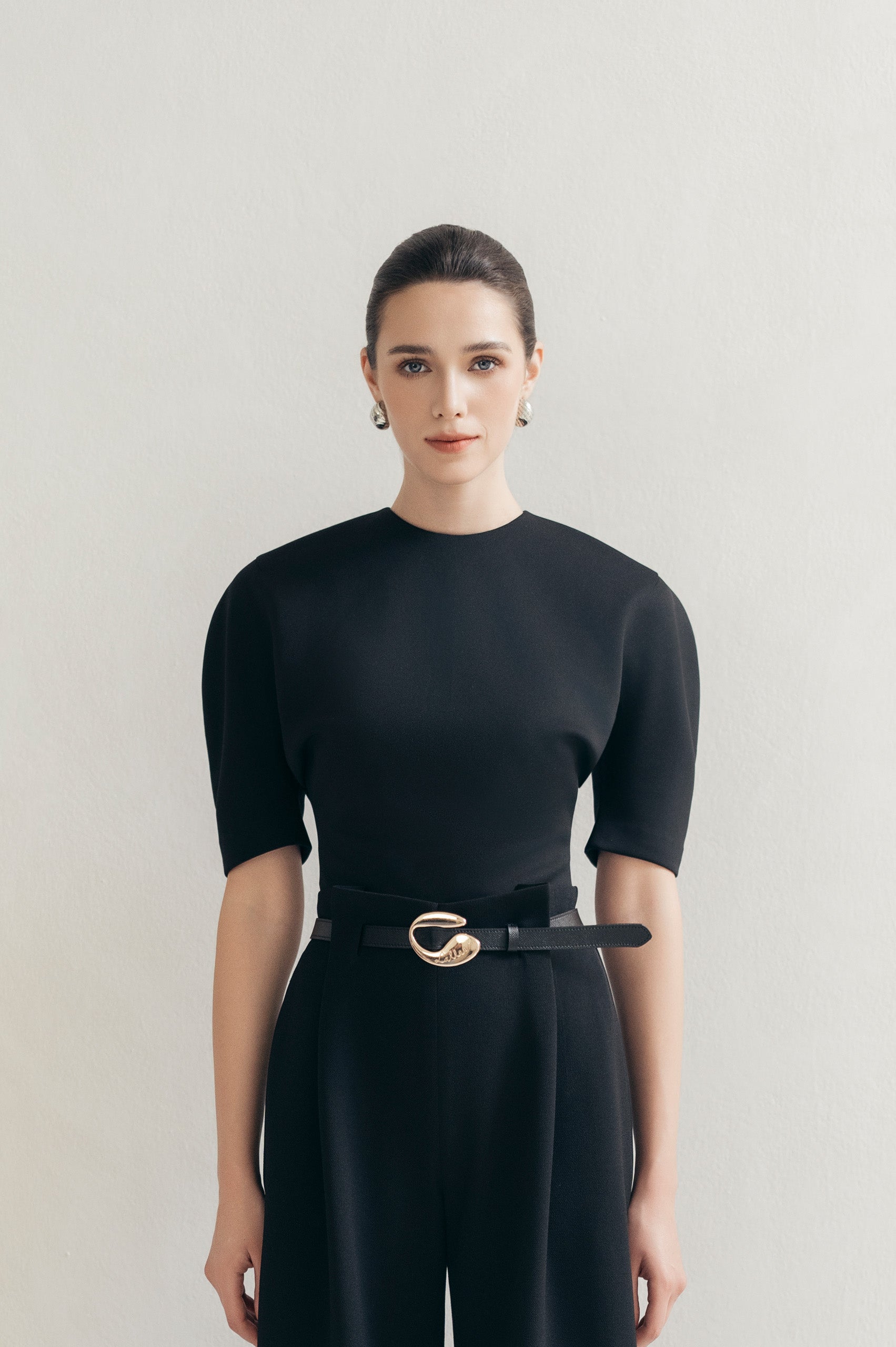 This fitted crop top hugs the waist with a round neckline and seamless sleeves, designed in a minimalist style with fewer cuts for an elegant appearance. The soft, stretchy fabric enhances the body's curves, making it suitable for various occasions. Pair it effortlessly with wide-leg pants or skirts, complemented by different items and accessories to create a vibrant and dynamic overall look.