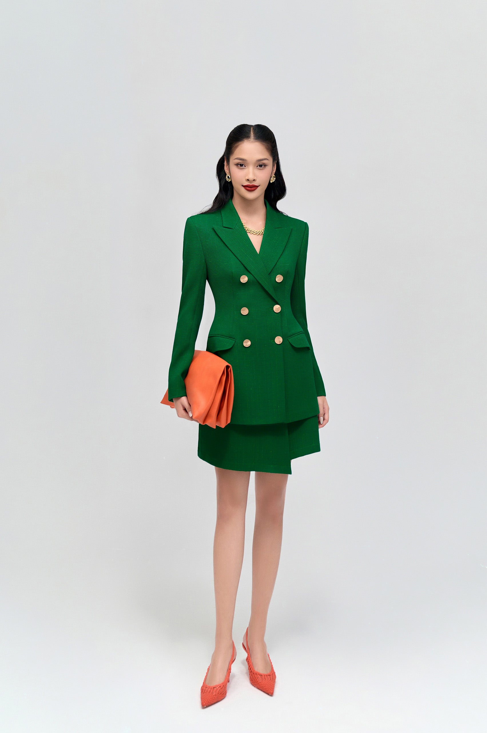 Emerald Classic Blazer is dressed in a cool blue color as she appears in the soft winter sun, which makes her appear opulent and alluring so that she can merge in with the glitzy setting of the impending holiday parties. This winter, would the L'ALLÉE ladies opt for a youthful ensemble with an A-line skirt and flared pants in a really edgy style? Share your L'ALLÉE in a comment!