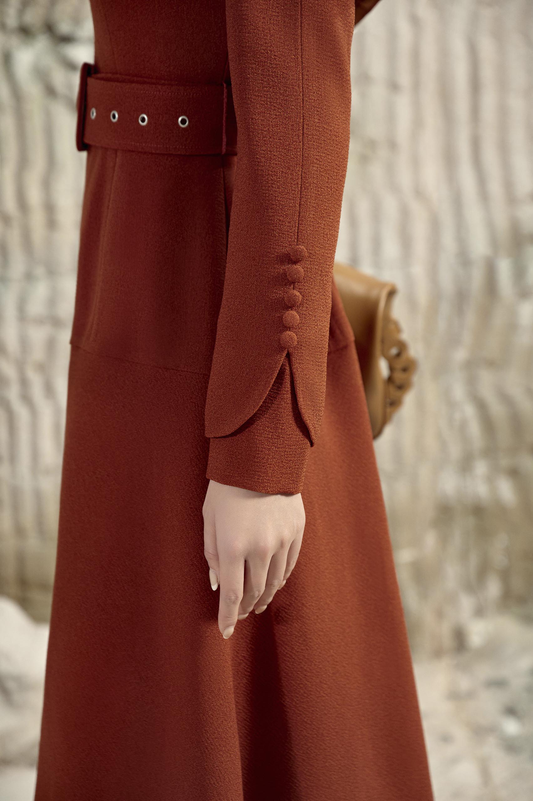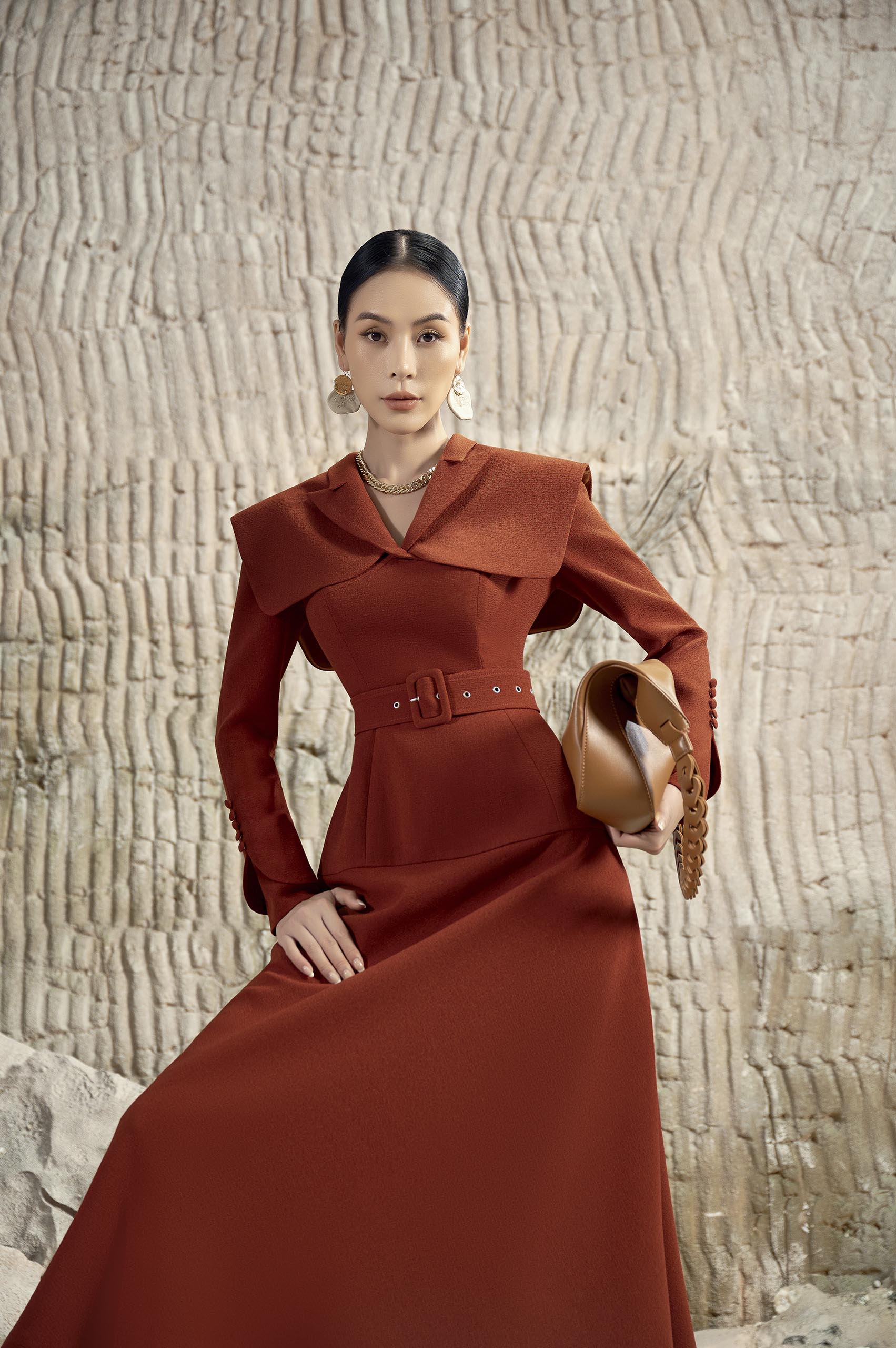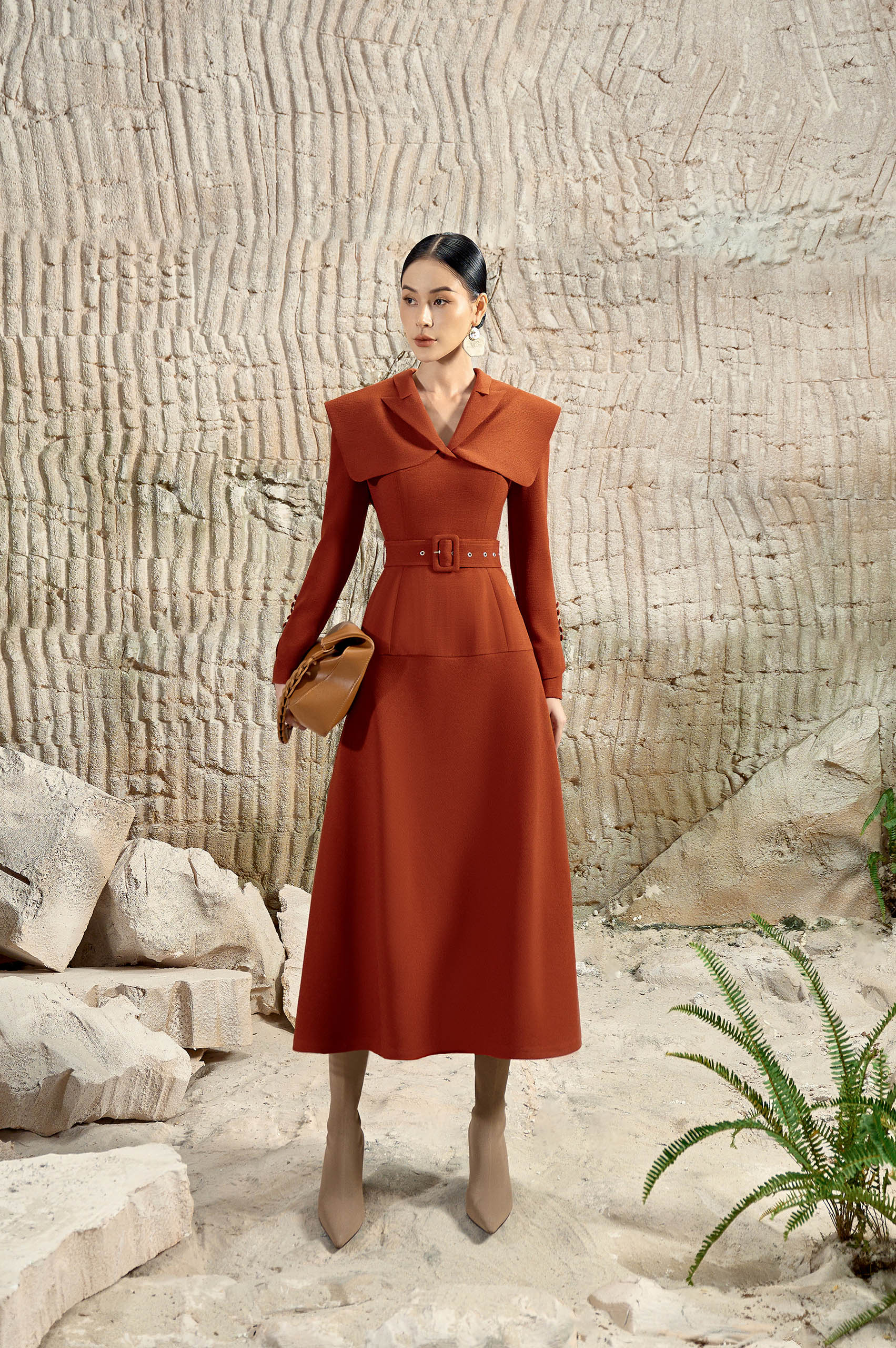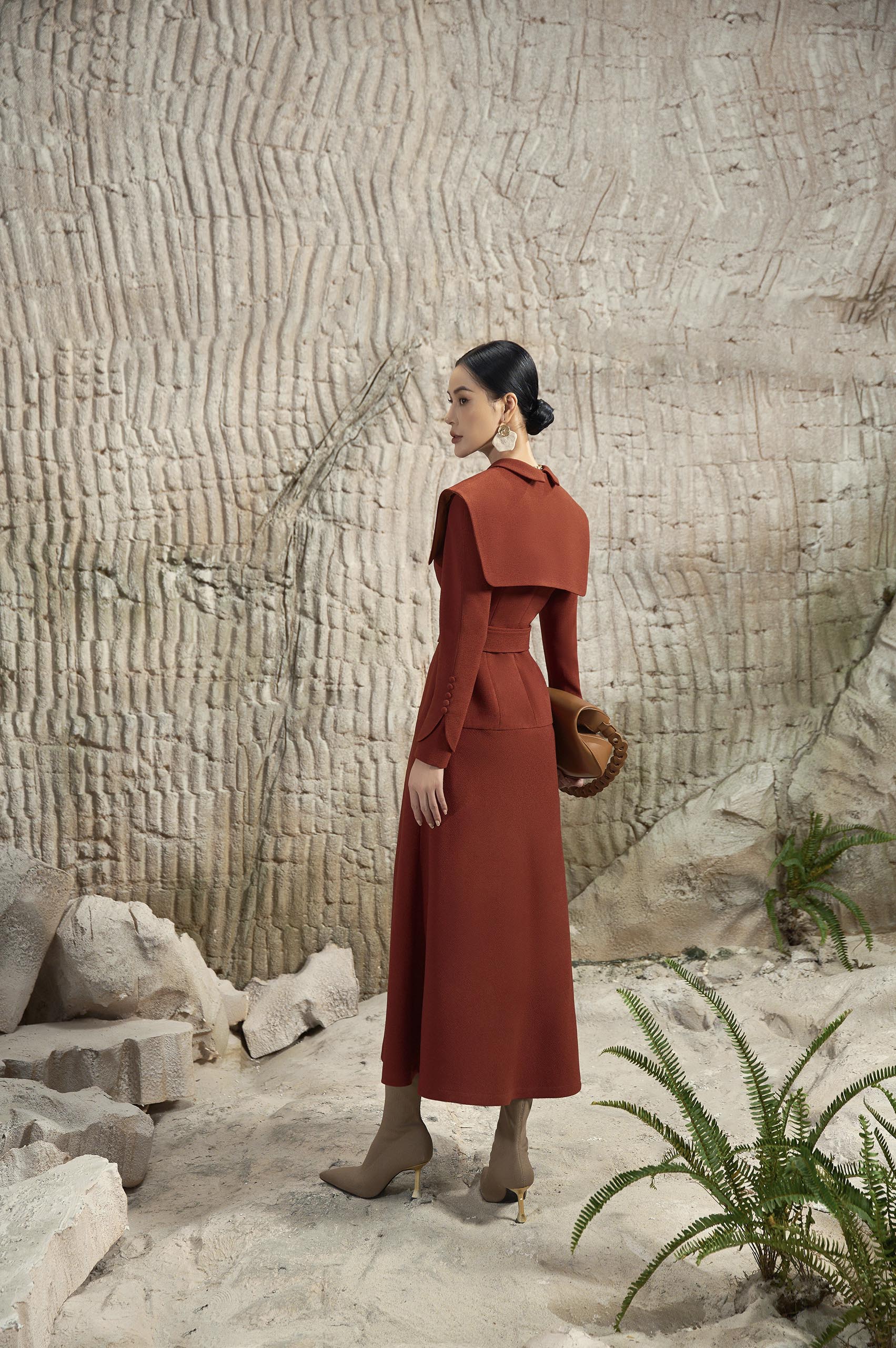 L'ALLÉE's Camellia Orange Cloak Dress, which she wore this fall and winter, has a spread A-line shape, a tight upper body, and delicate horizontal shoulder details, giving her the look. Every party and street is luxurious and fashionable. Visit the store to dress up in L'ALLÉE's newest design and incorporate rust orange into your Fall/Winter wardrobe!
