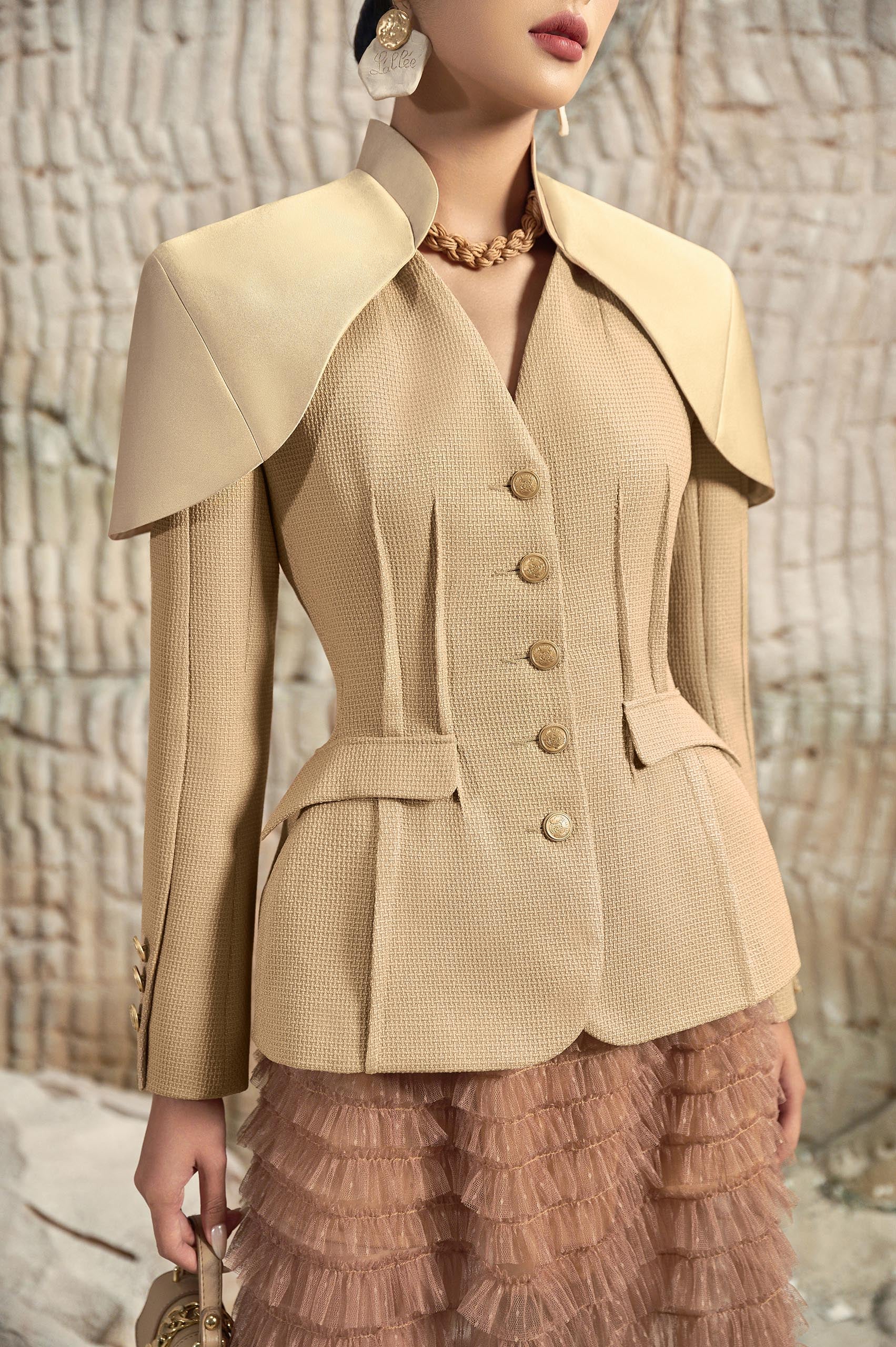 The amazing Camellia Tight Waist Classic Vest from The Initiation | Fall Winter Collection '22 is opulent, arrogant, and a touch out of the way. On the well-known tweed background, the design will transport her to fresh fashion sensations. The personality flap and solid hourglass form of the Camellia Tight Waist Classic Vest highlight the wearer's ideal physique. When combined with a Camellia Tiered Lace Skirt skirt, the mixture is even more ideal for creating a chic and current look.