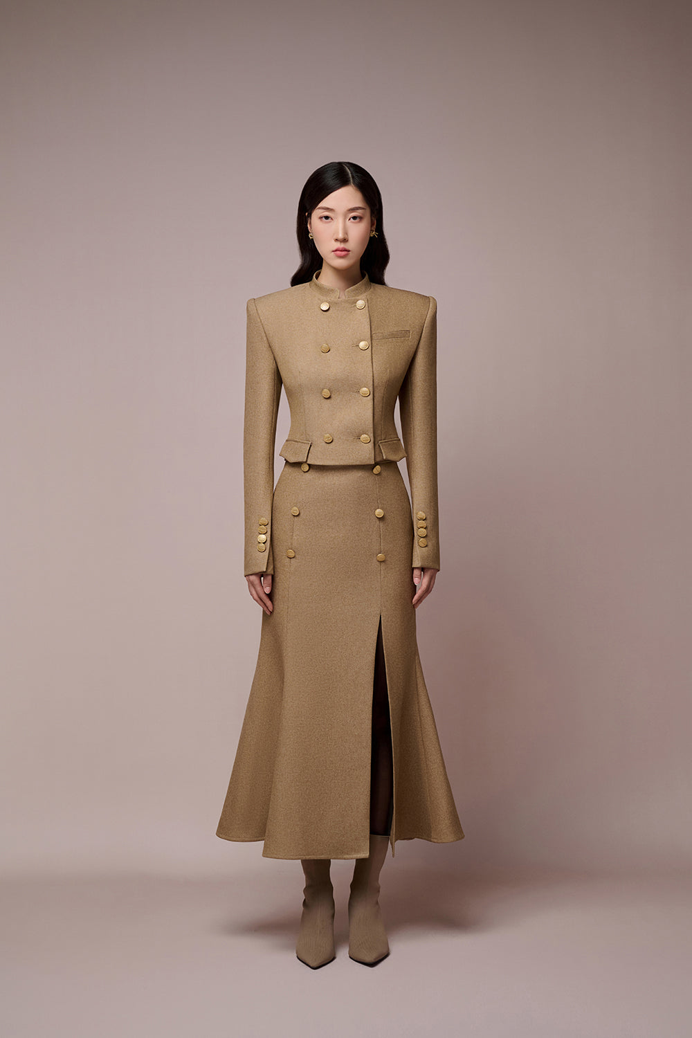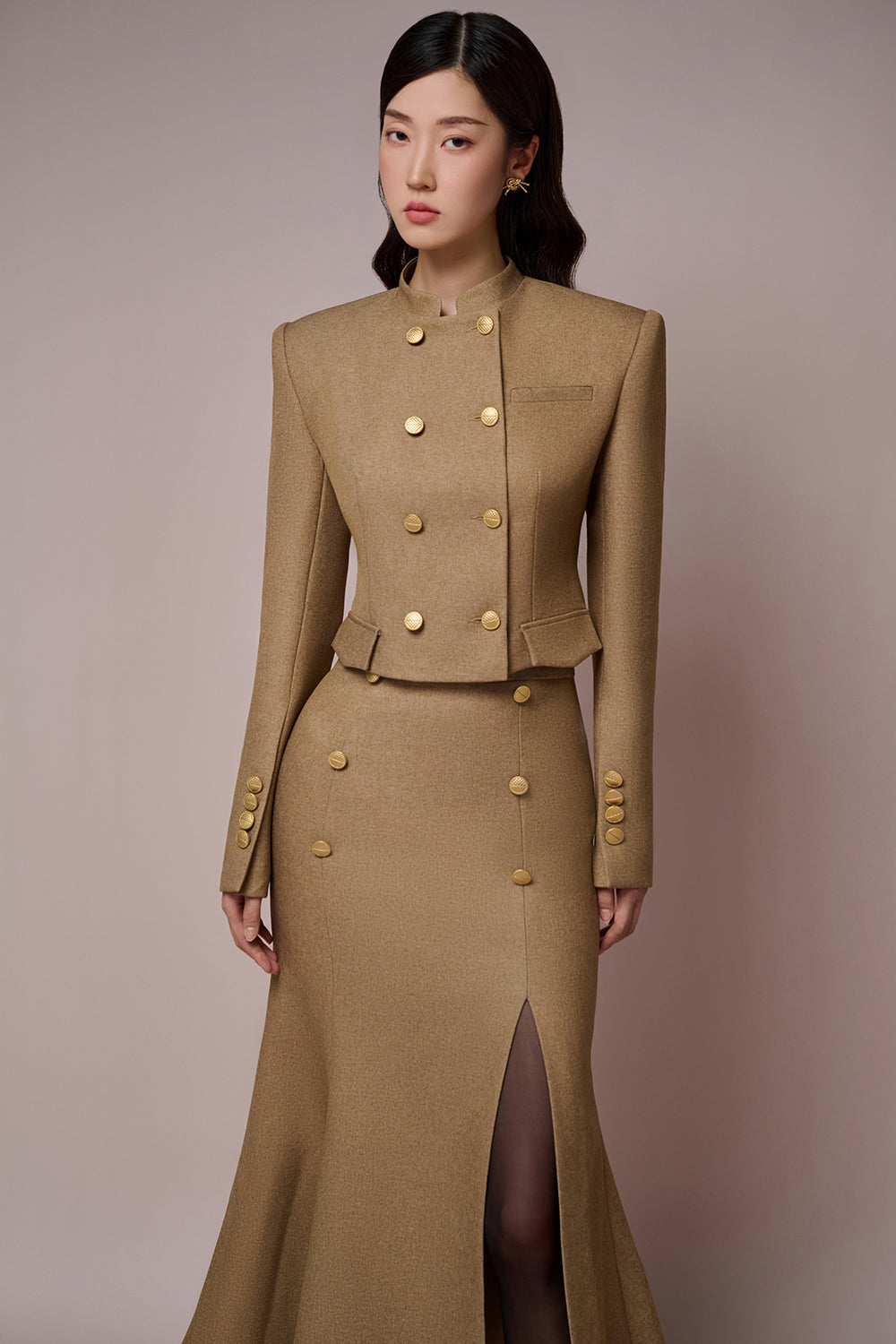 Soft mermaid skirt with waves, thigh slit design combined with two rows of decorative buttons brings youthfulness and strength while still having just the right amount of charm. High-quality wool...