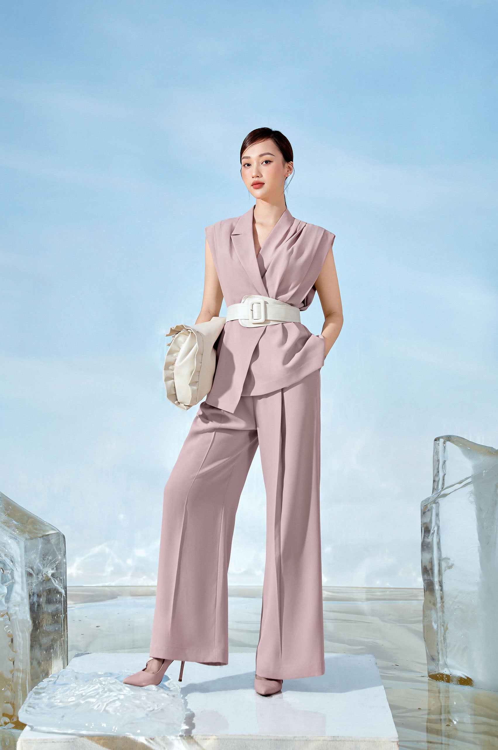 Straight pants are a style that is easy to coordinate with a variety of shirt styles, creating many outfits with different styles. Cloudy Straight Pants with 2 colors: Ash Pink and extremely trendy Ash Purple will bring a new breeze to her look this spring. Using Tuytsi fabric to create Cloudy Straight Pants, this design not only ensures the right pants shape, moderate drape, but also achieves comfort in every movement.