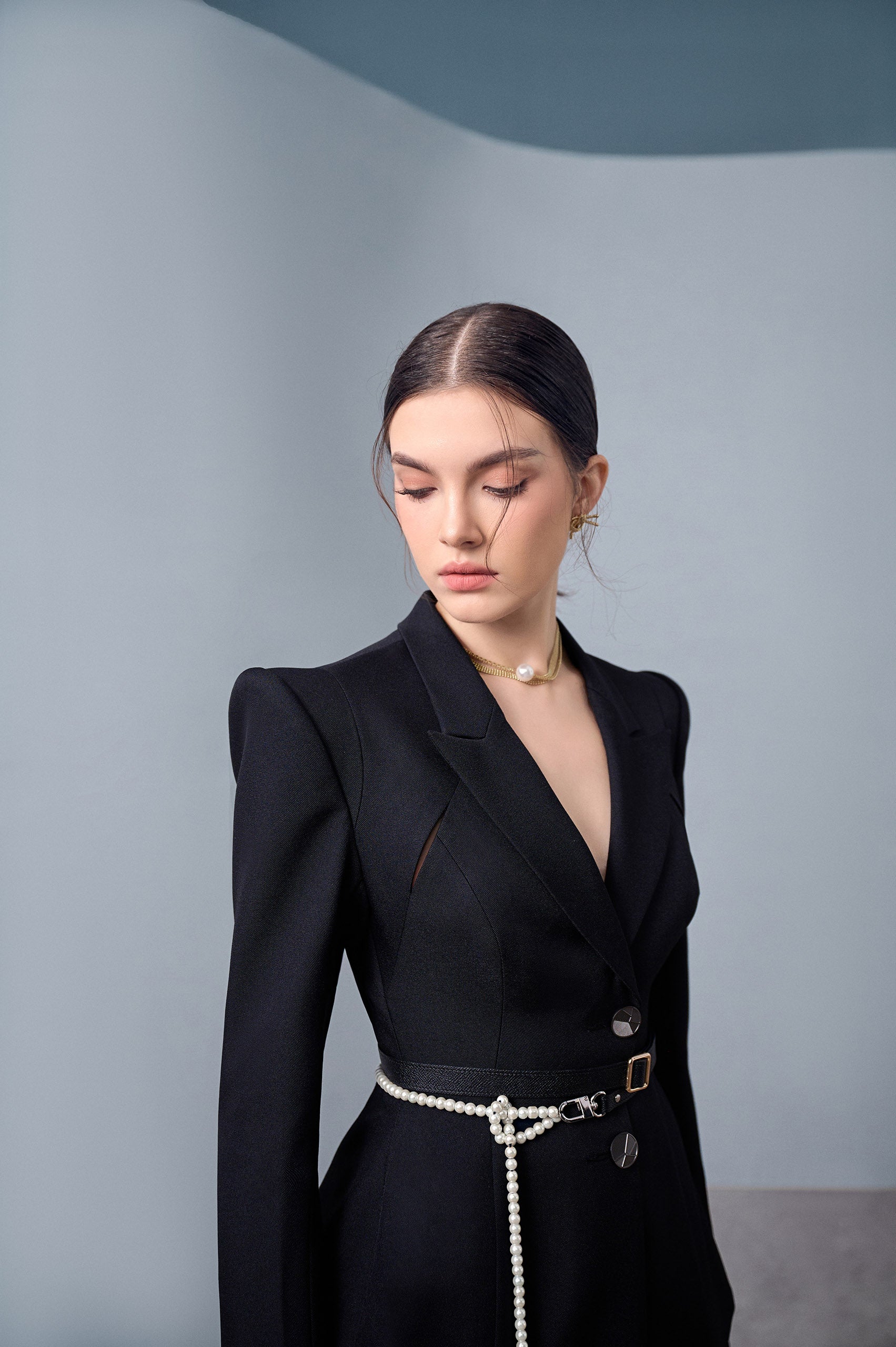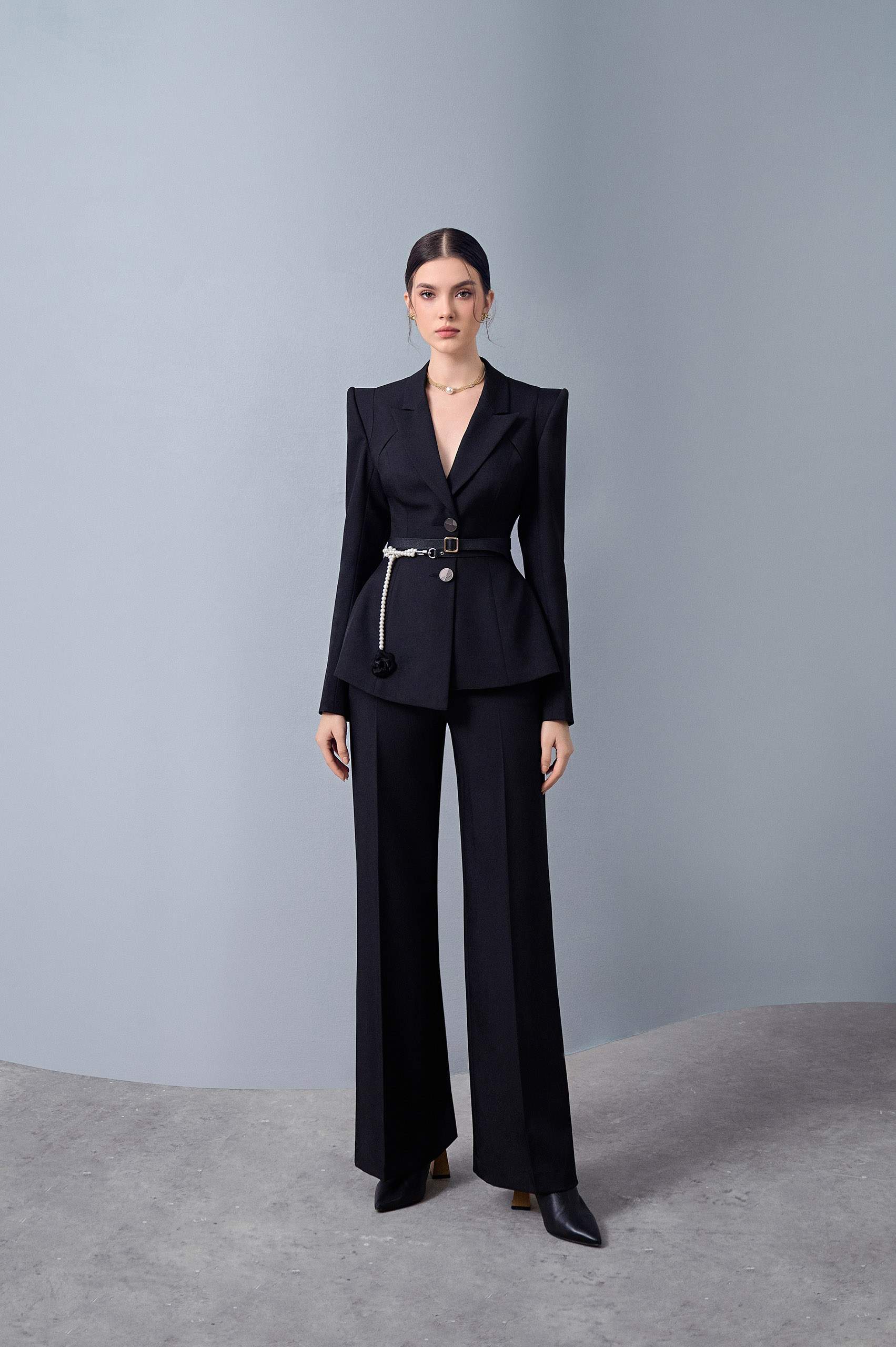In every well-organized context and event, the black suits are always the first choice for you. Della Black Asymmetrical Lapel Blazer of L'ALLÉE's will help you stand out with your shoulder cutout top, waist tightening technique to increase hips, creating an hourglass-standard body shape that has fully exploited the advantages of woman's body. Blazer combined with straight-leg pants is well done, the pearl belt is also a special highlight, exuding a classic and equally luxurious look. Don't miss the new mix of L'ALLÉE in this February!