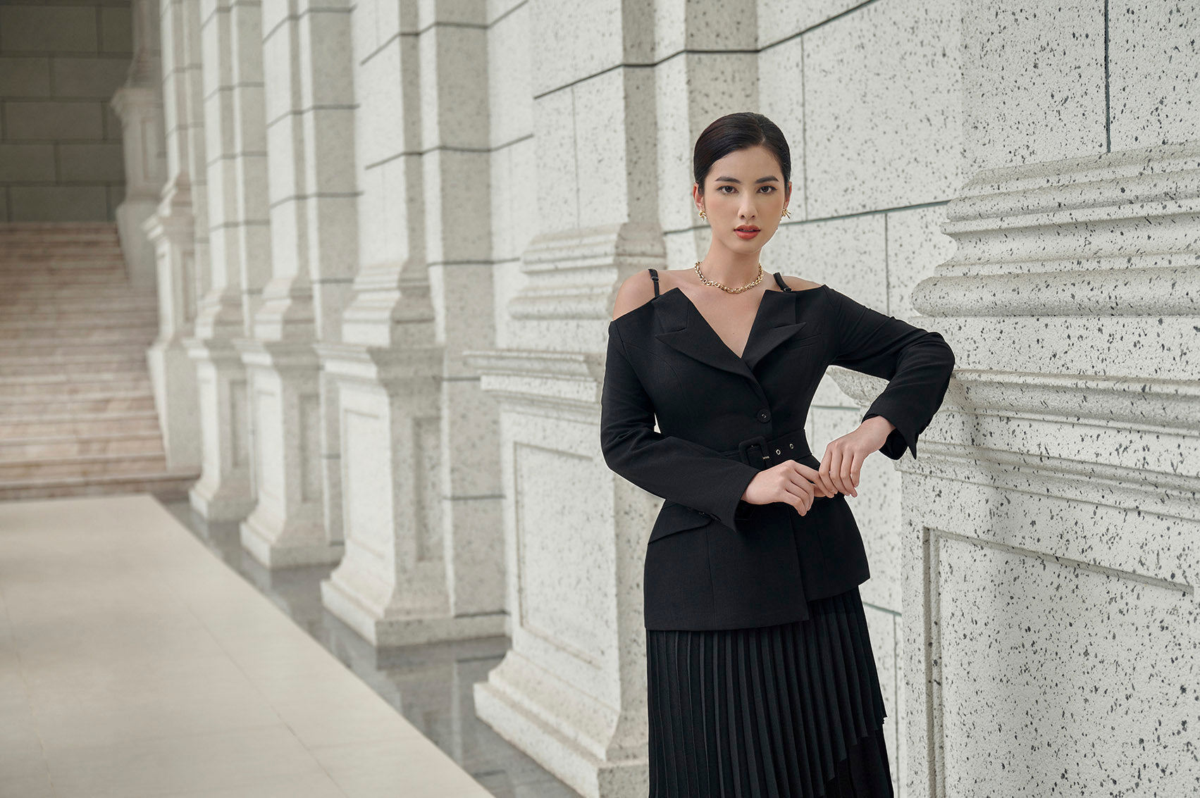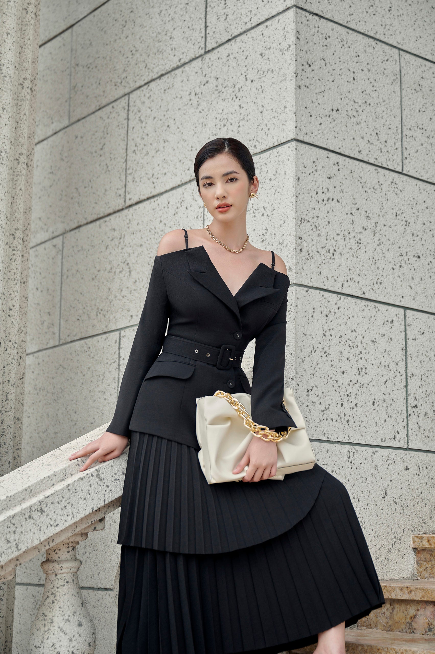 Returning to the autumn-winter fashion season, fashionable ladies will undoubtedly be drawn to the powerful vest or blazer designs. Unlike the traditional blazer shape, the Off-shoulder Blazer in black and white combines soft and pleated skirts with smooth layers, adding flexibility, charm, and modernity to the look. Let's go to the office or to haughty and seductive parties with L'ALLÉE!