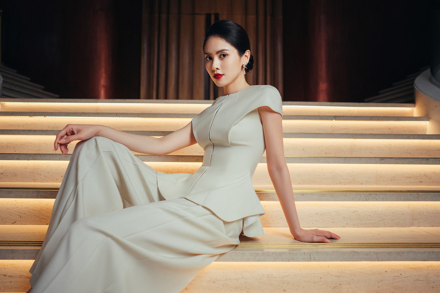 Wide-leg pants with 2 folds on the side create the illusion of longer legs, exuding elegance and luxury. Easy to coordinate, flatters hips and butt. Mix: Shirt, Blazer, blouse.