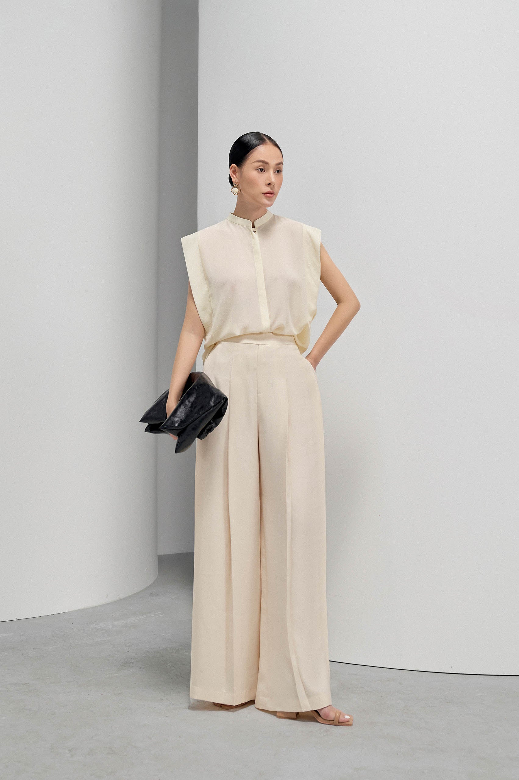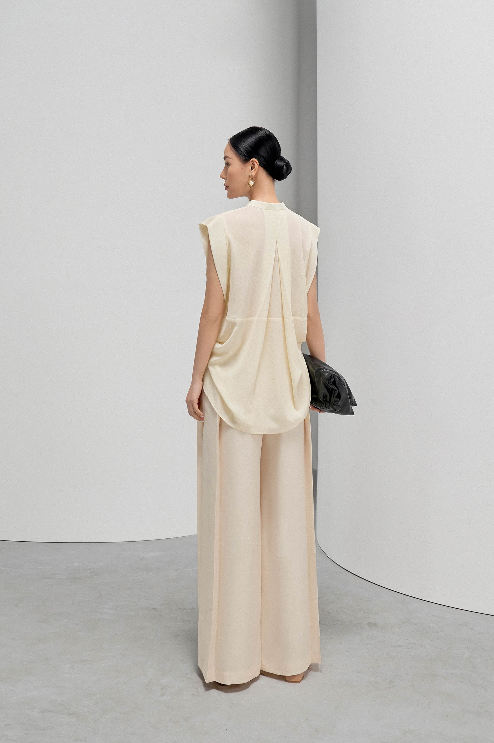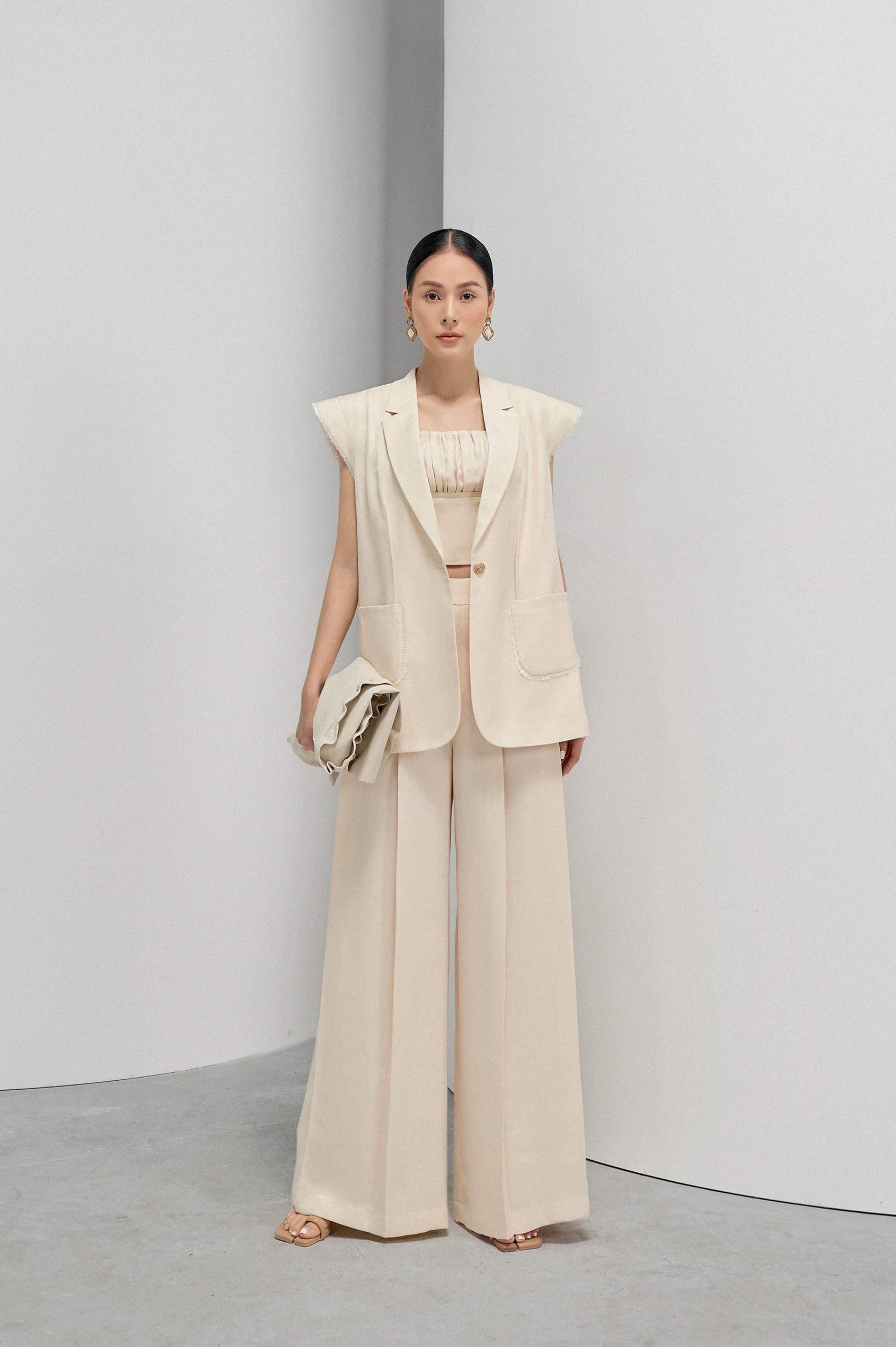Pants are a style that is no longer strange to modern ladies. With the traditional cream color and the simple design of the big soup cup front and back, it is easy for the wearer to coordinate and help enhance the 3rd round and "hack" long legs effectively.