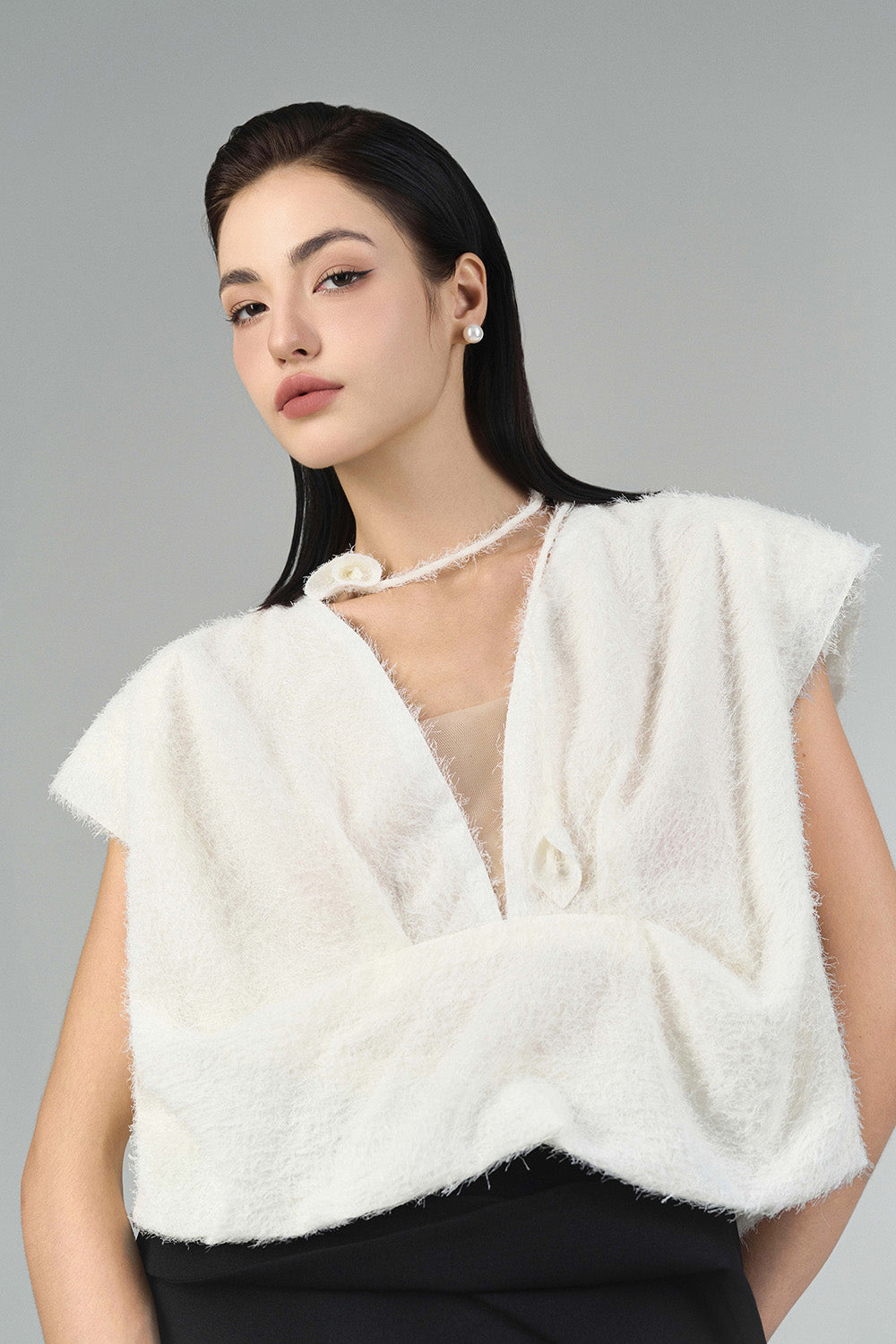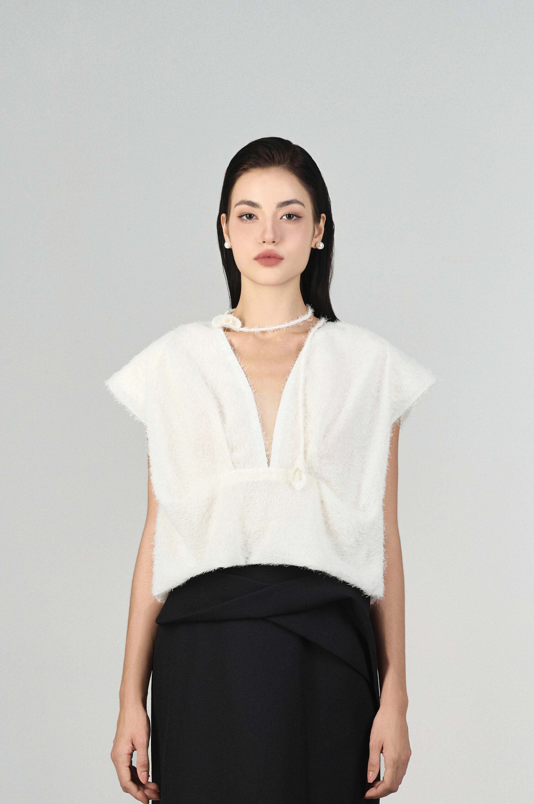With a deep V-neck a sleeveless design, Jasmine croptop is a perfect item for the summer. A relaxed waistline also help elegantly conceal the figure and suitable for multiple body shapes.