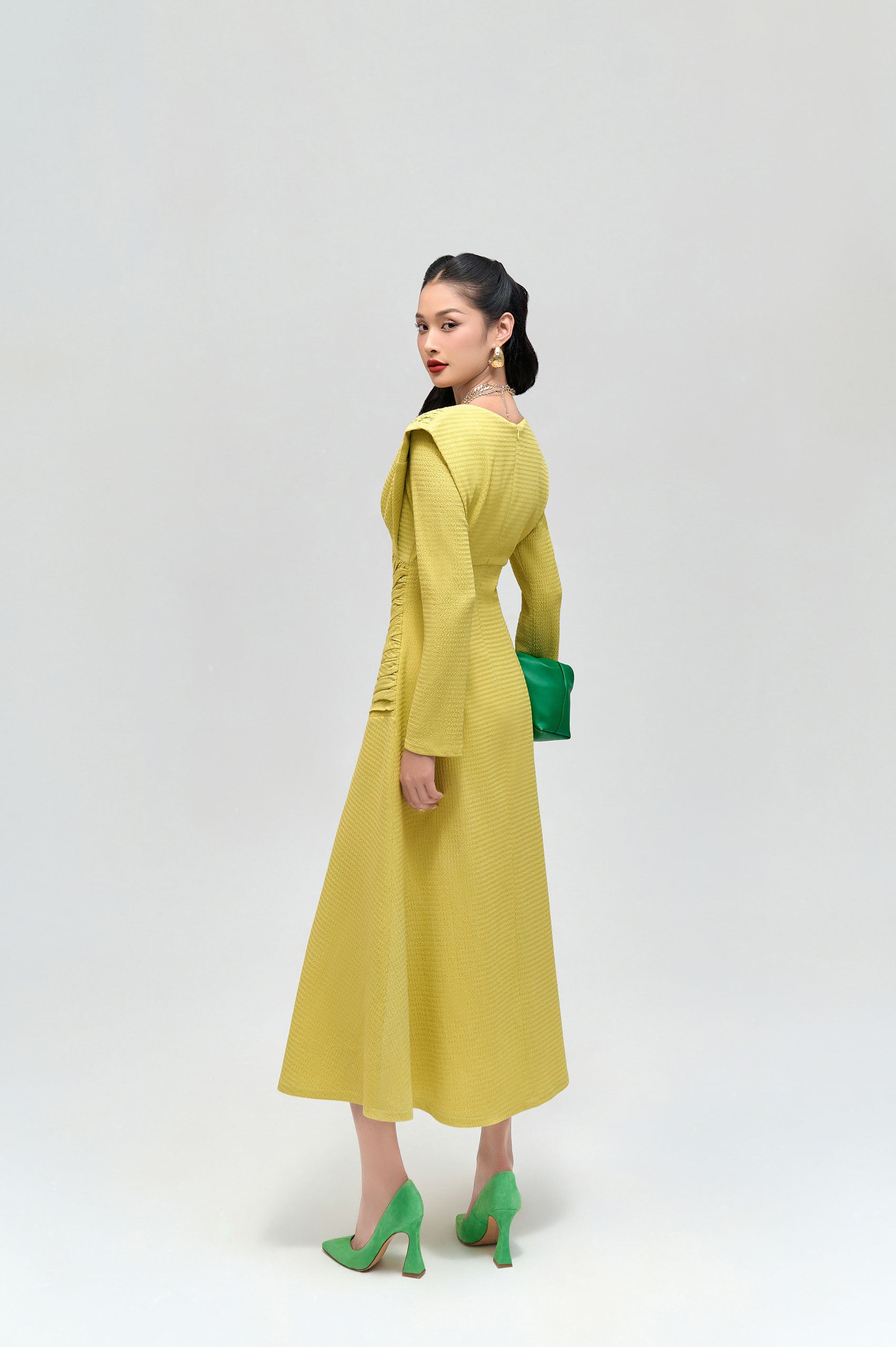 When wearing contemporary clothing and engaging in activities she enjoys, an independent woman's opulent and self-assured personality is always displayed in the most unforced manner happiness. With its distinctive horizontal shoulder design, smocking technique, and ruching points to highlight a full circle, the Juniper Pinch Smocking Shoulder Dress offers a sensuous but still understated appearance that she can choose with ease. Select in any circumstance. Don't pass up today's fantastic L'ALLÉE goods!
