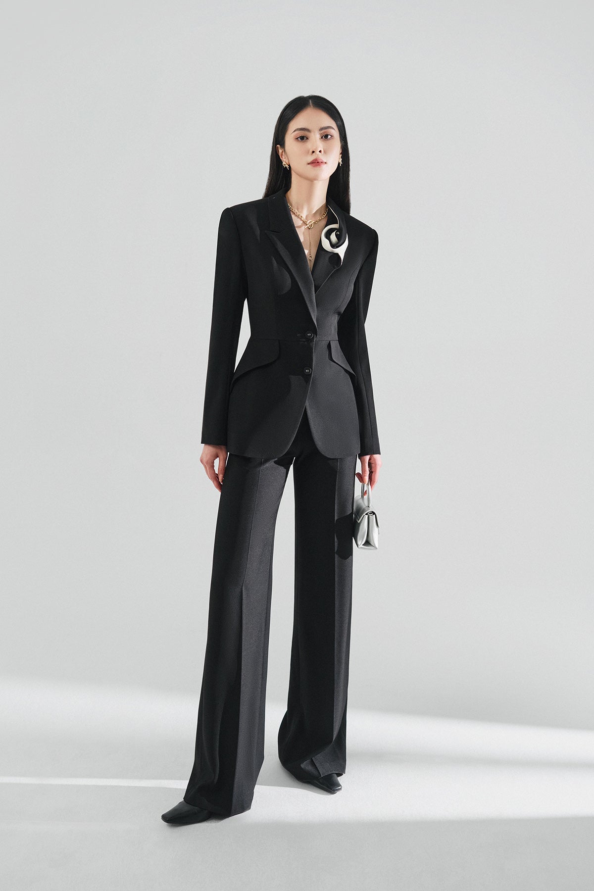 Straight-leg pants are pleated in the middle to create the feeling of longer legs, exuding elegance and luxury. Easy to coordinate with blazers, shirts, blouses.