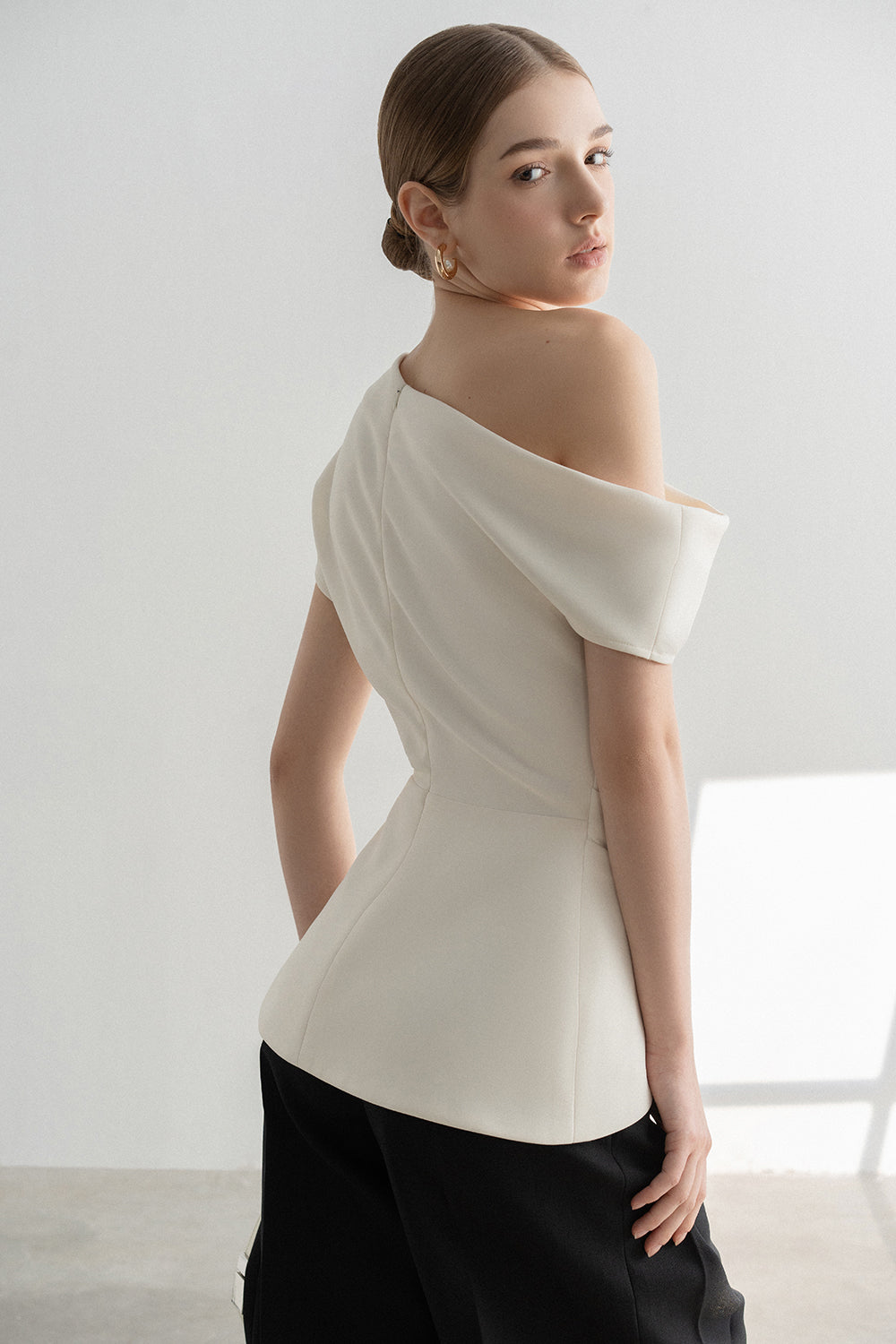 Elegant and sophisticated beauty is greatly showcased with Nelly Shirt. A peplum shape with asymmetric off the shoulder highlight just the right amount of skin while cleverly show off the...