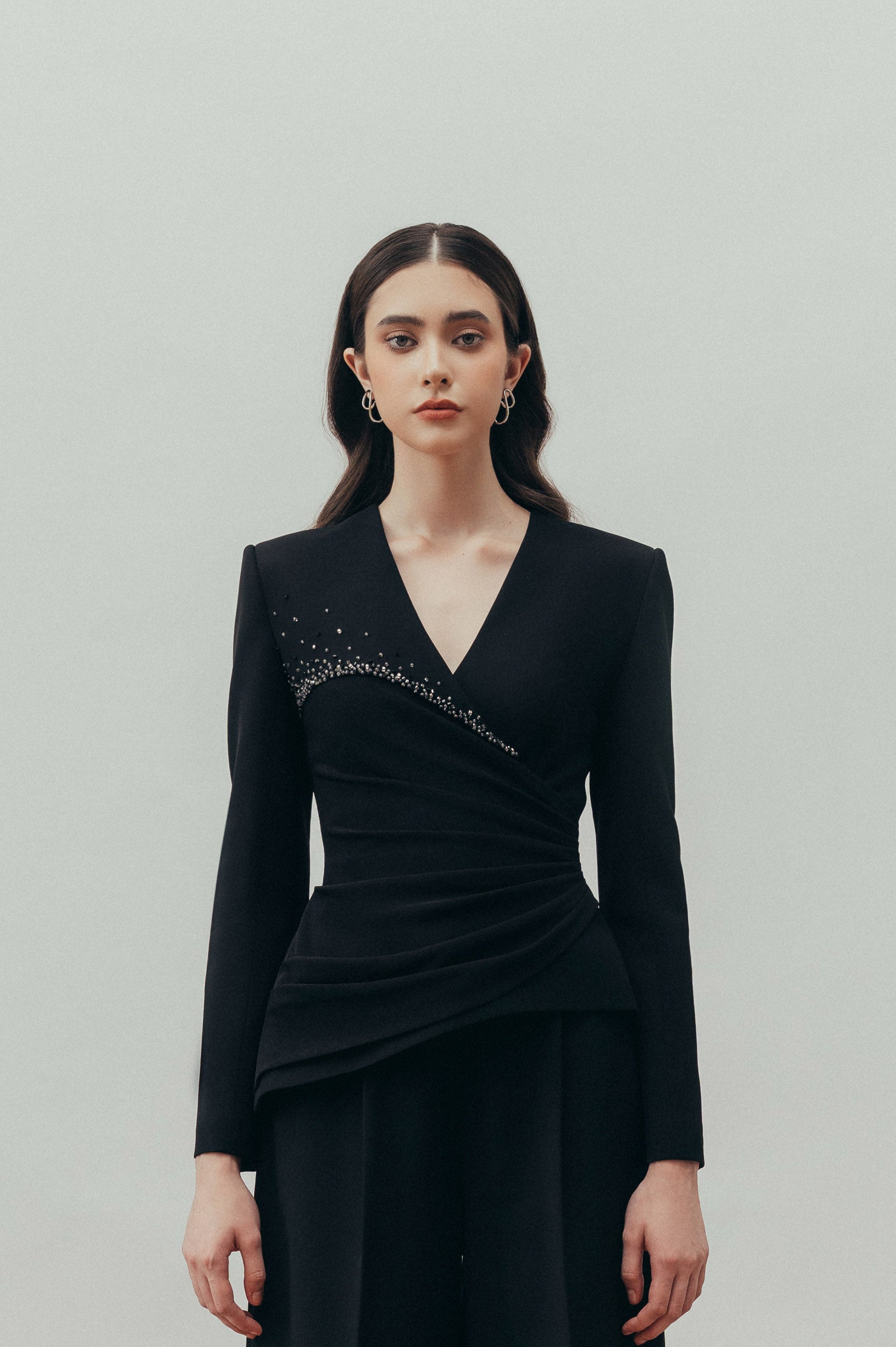 Material: Twill fabric, smooth with a subtle drape and wrinkle resistance. Color: Black. Mix & Match: Easily paired with wide-leg pants or skirts for an effortlessly elegant look. Length: 54...