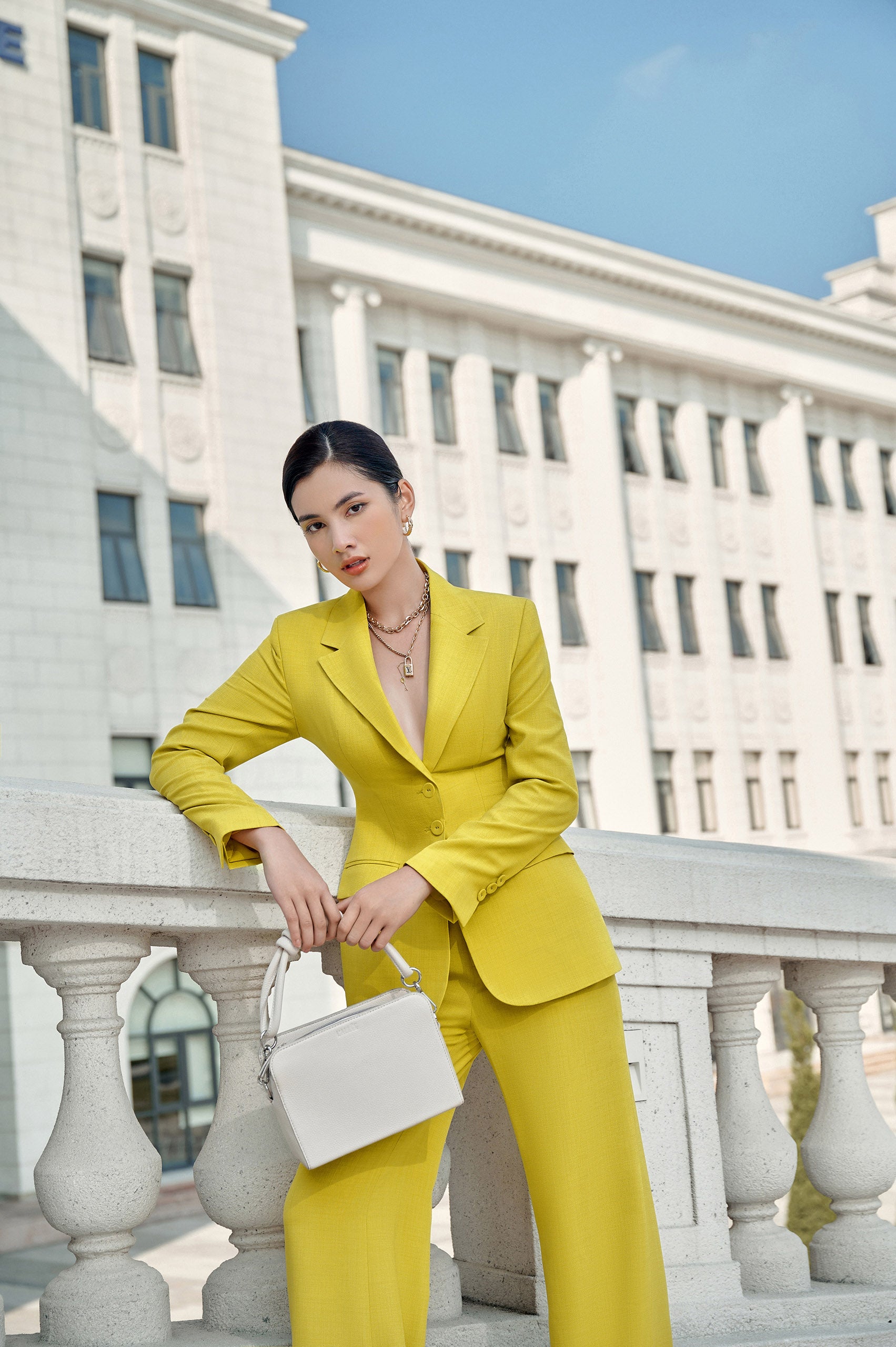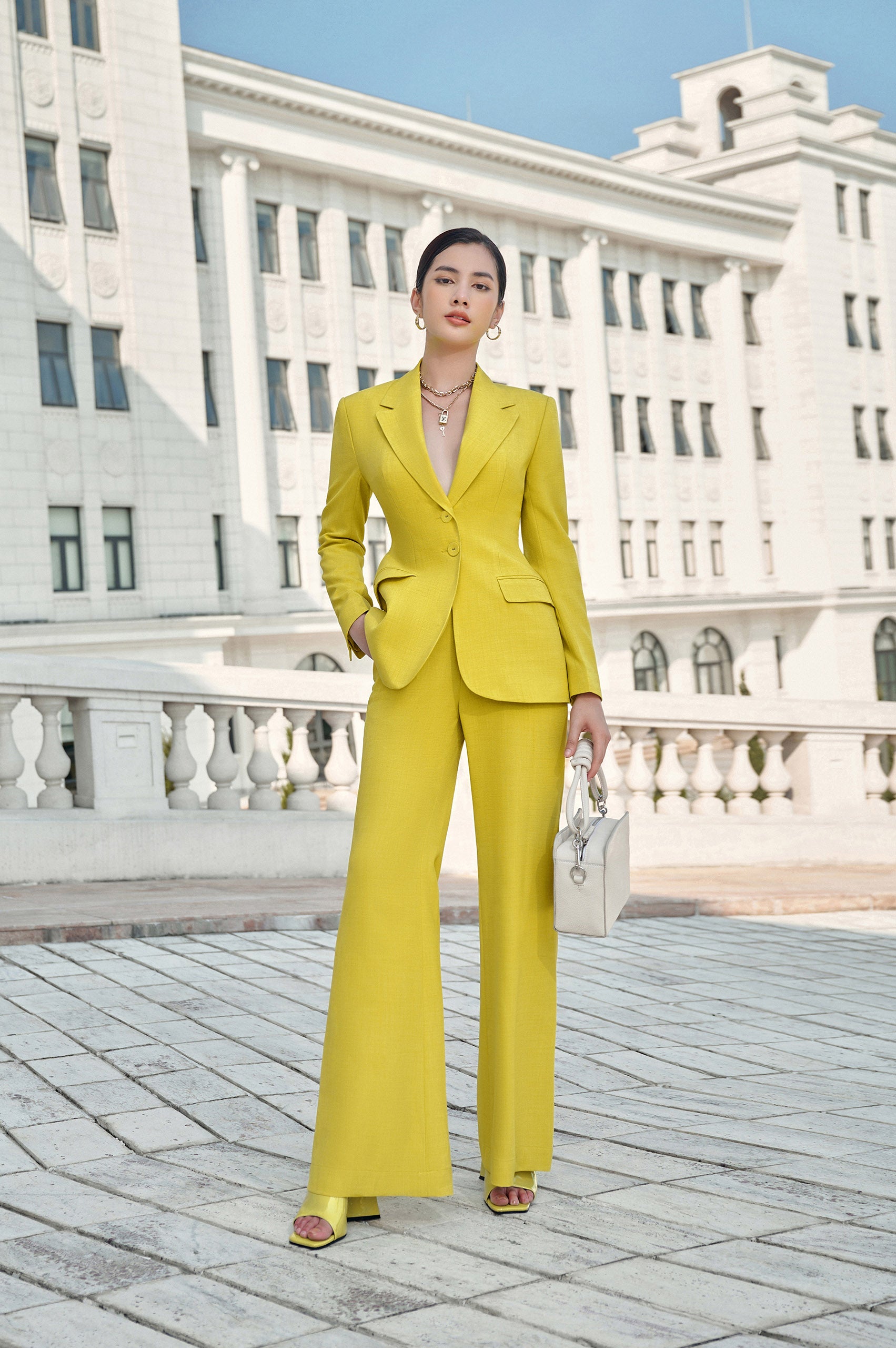 It is definitely necessary for the luxurious and seductive suits that L'ALLÉE sends to her this autumn and winter to perfect her beauty at the office. The classic blazer silhouette combines hip and waist enhancement techniques to create a slim look and flatter curves, with a color palette ranging from subtle black and white to vibrant reds and neon greens. She only needs to add more monochrome accessories to her outfit to complete a modern and luxurious look at every party.