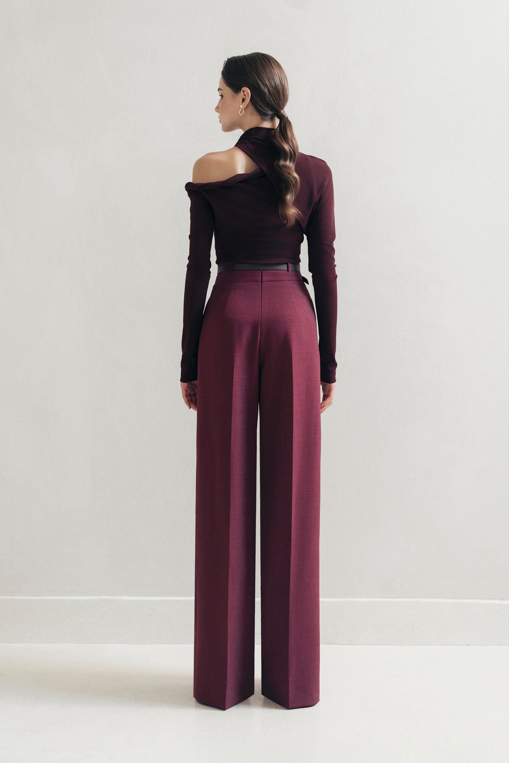 These wide-leg trousers offer a youthful and comfortable look with a sophisticated two-pleat design. The unique double waistband not only highlights the waist but is also complemented by an exclusive leather belt with a creative tie, bringing a fresh and impressive touch to the outfit. The soft and breathable material makes these trousers easy to pair with a variety of tops, suitable for both office settings and casual outings. Pair them with blazers or shirts for versatile styling options.