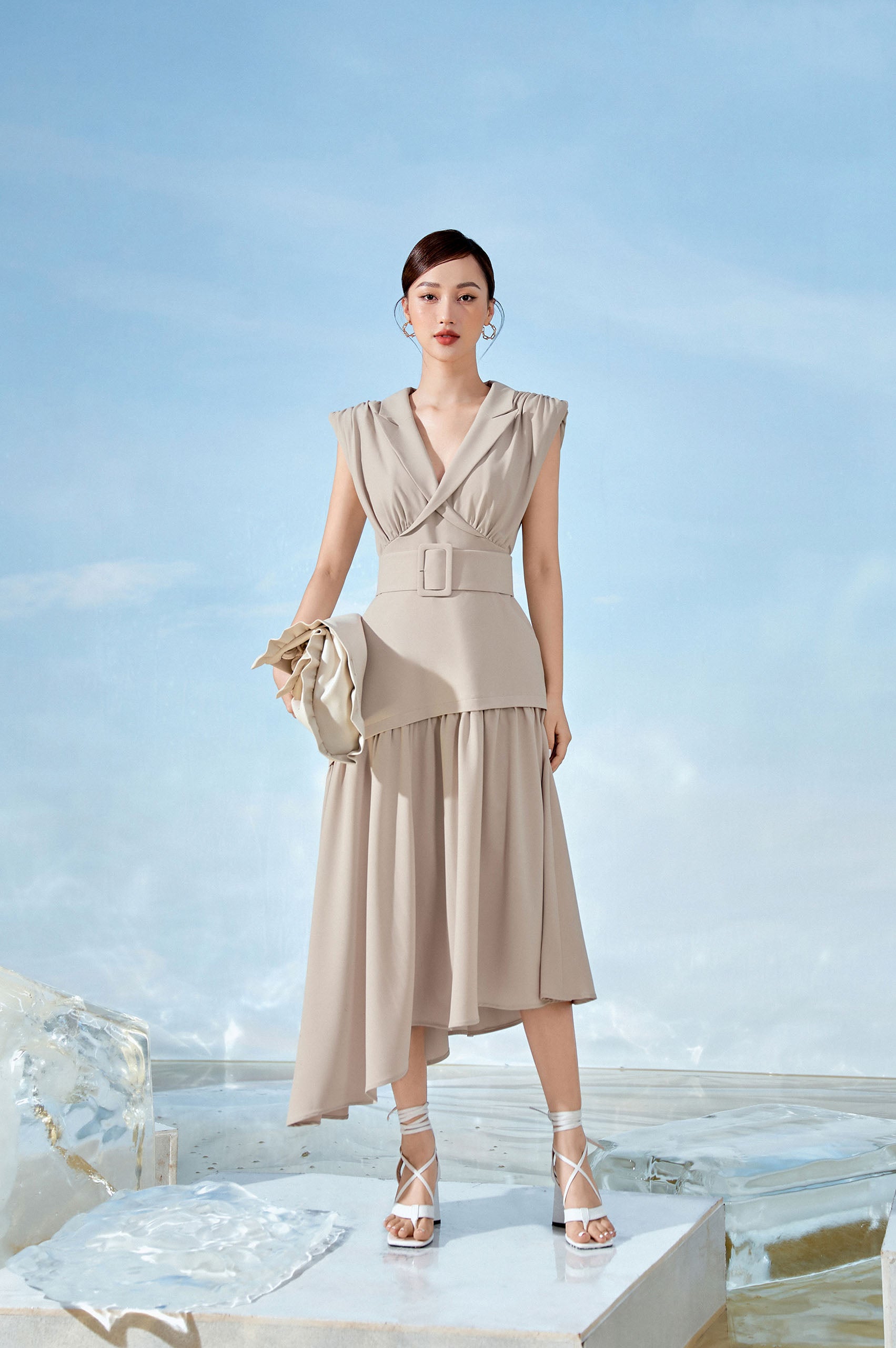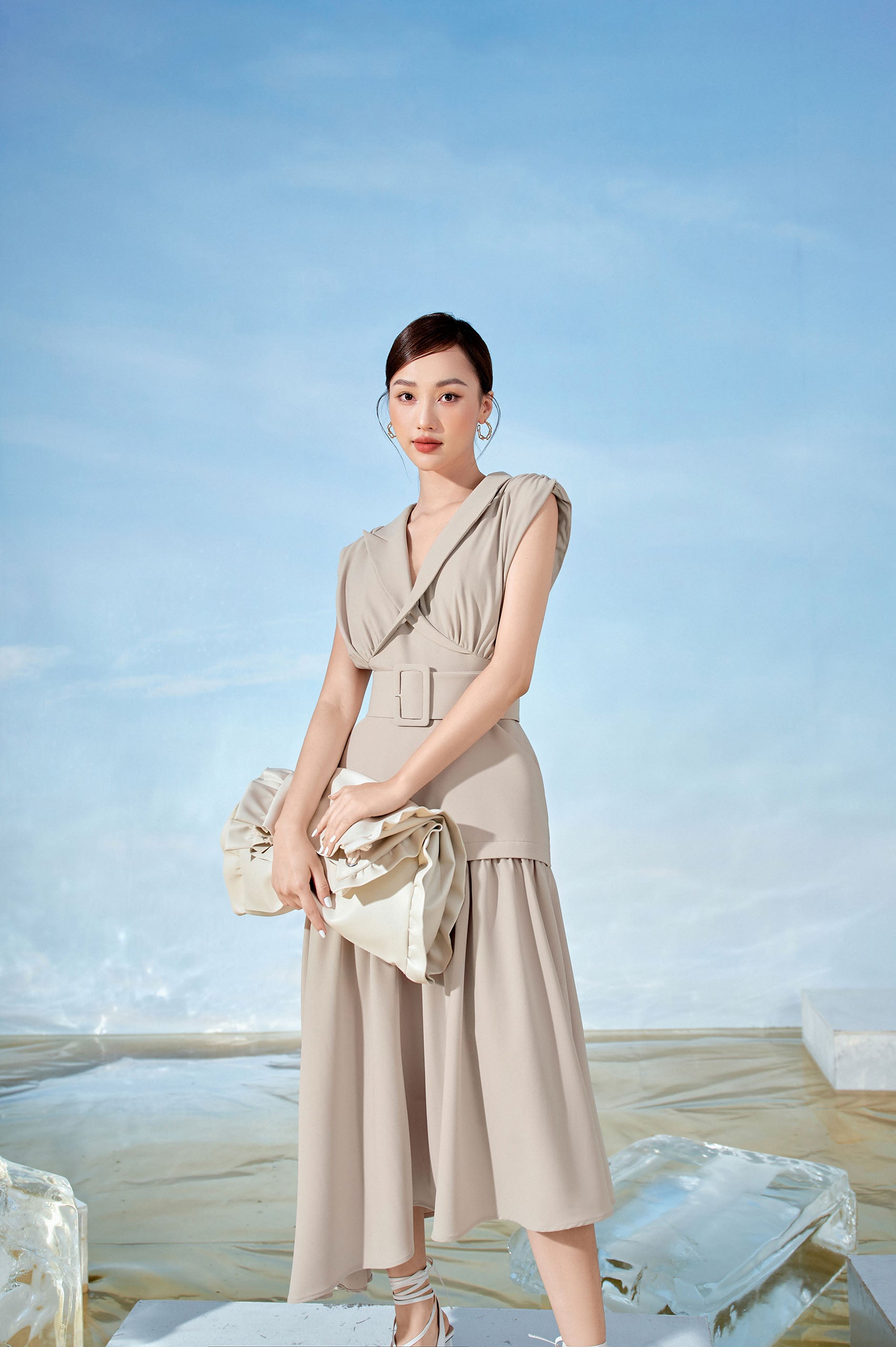 Sandy V-neck Long Dress is like a classic for her this summer. The design of a long dress with a split neck, pleated shoulders and a large leather belt at the waist helps to shape the wearer's figure, giving the wearer a sweet and seductive appearance. The material of Tuytsi fabric both brings a soft and comfortable feeling, and helps shape the shape of the clothes.