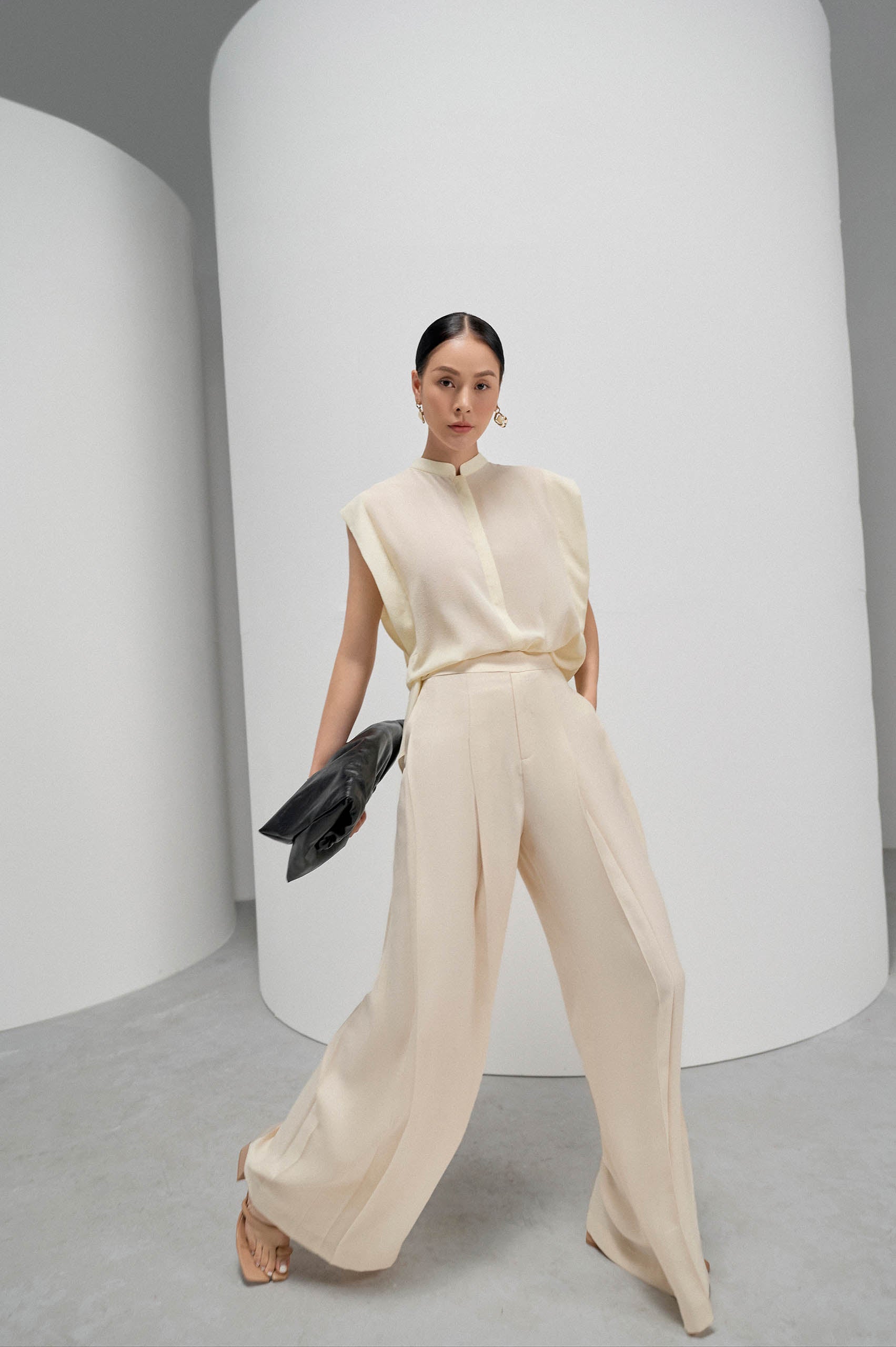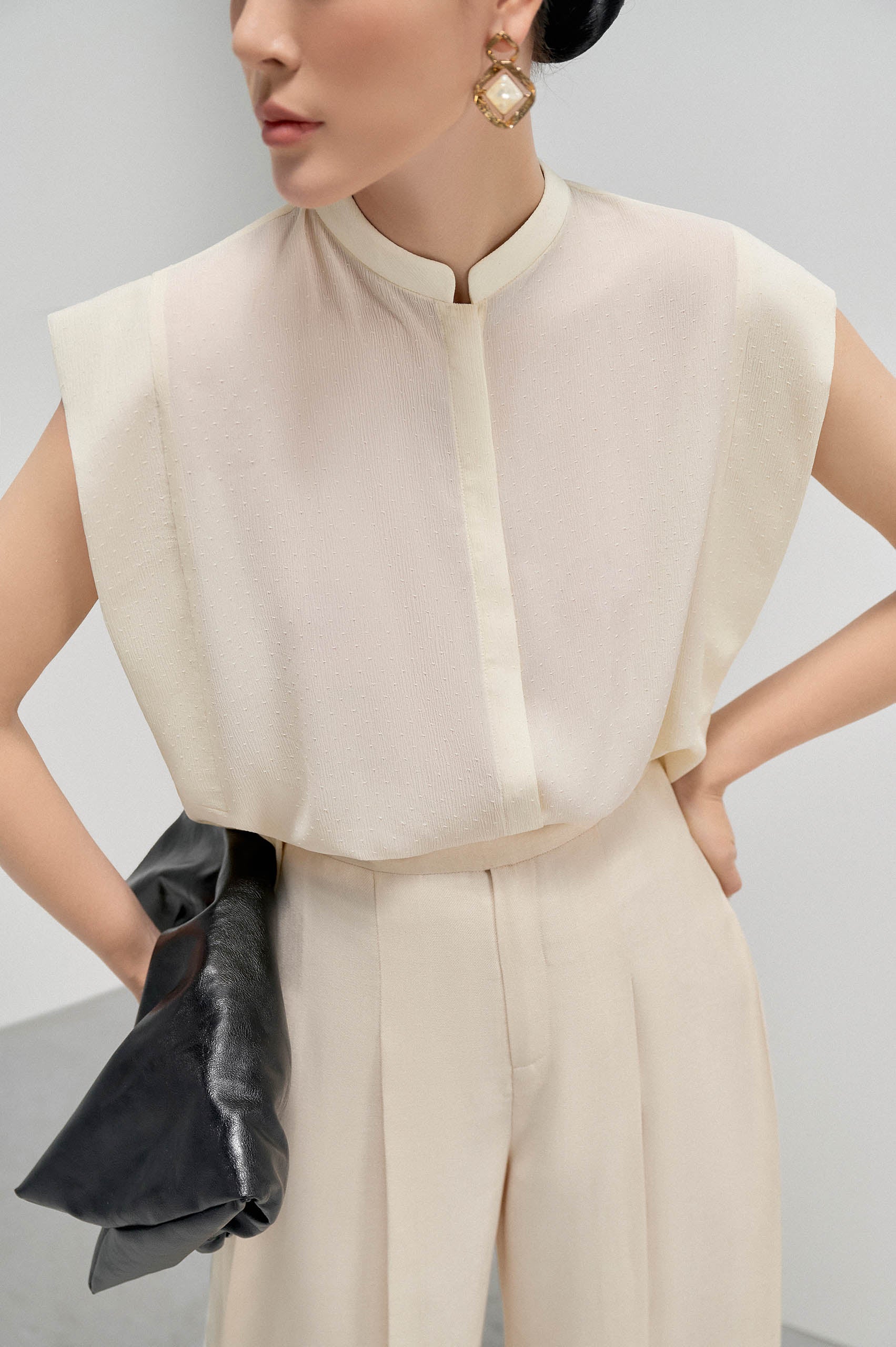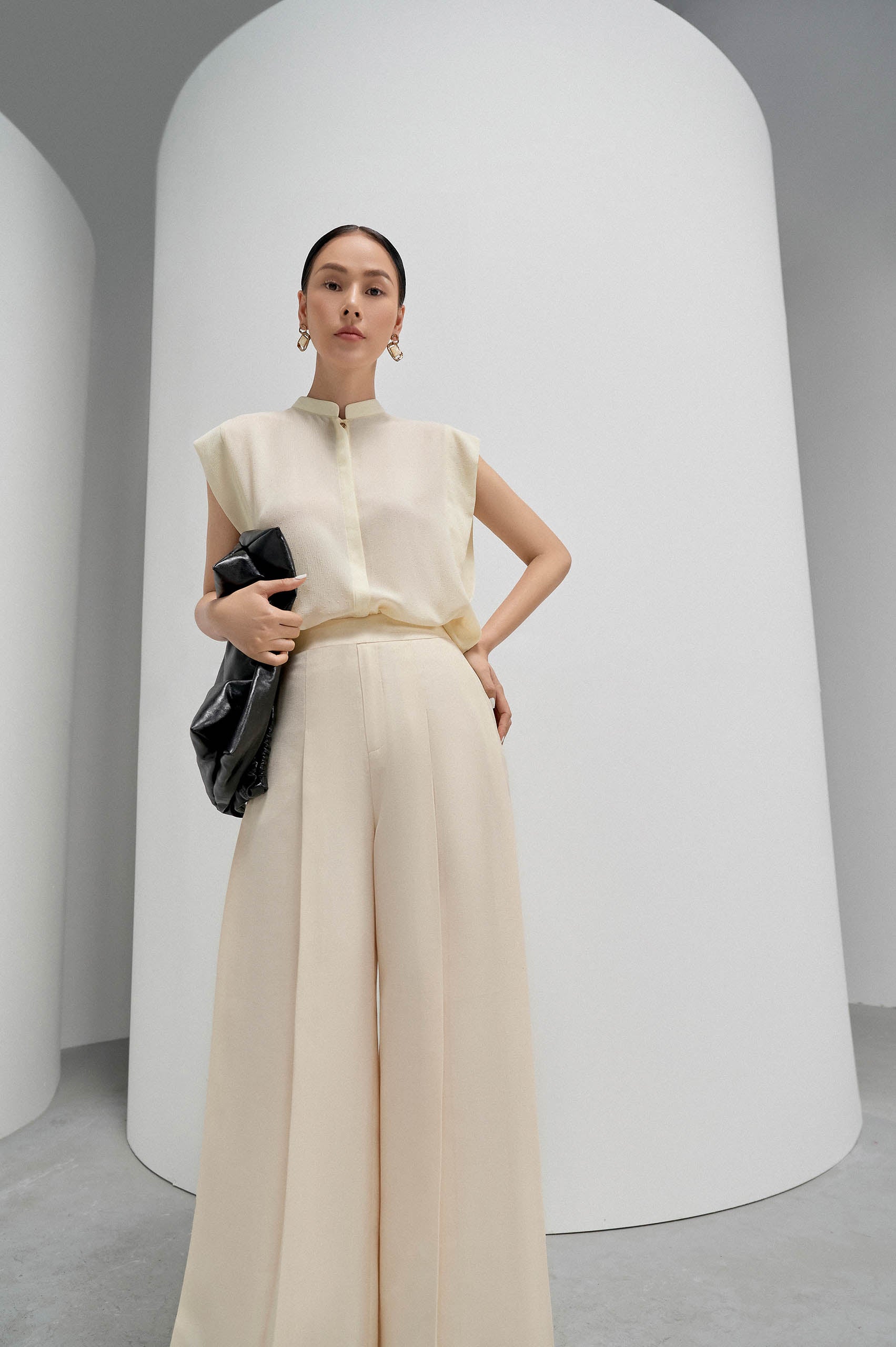 Subtle beauty in ivory colors has always been L'ALLÉE's endless inspiration through its collections. This summer L'ALLÉE wants to convey that inspiration to the ladies through Sparkle Regular Fit Shirt. Using lightweight sheer material Sparkle Regular Fit Shirt is like the first rays of the new day, making the wearer comfortable and comfortable. The comfortable shirt form combined with the opening of the soup cup on the back creates a sense of flight when moving. Surely this will be an indispensable must-have item in your wardrobe during the summer days.