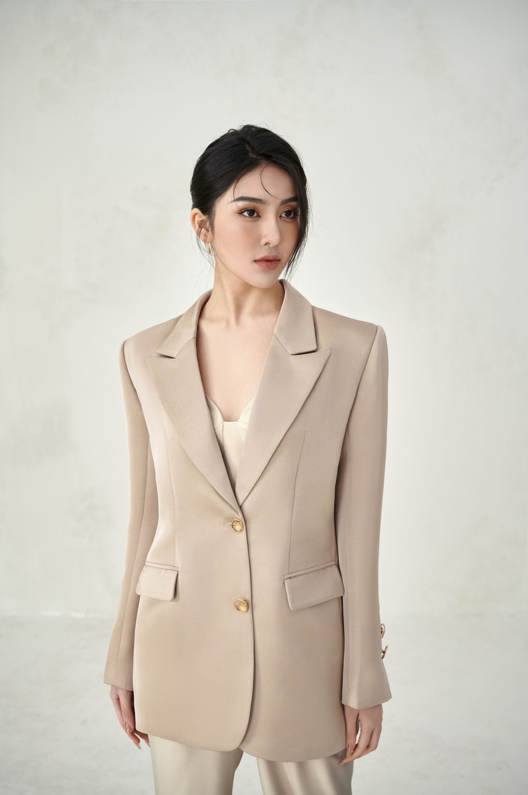 Breaking the limit of the norm, Stella Blazer brings a breath of fresh air, a new personality with an oversize silhouette. The light and youthful slouched shoulder shape combined with Silk Taffeta material gives you an attractive and unforgettable personality right at the first meeting. The design comes in three tones: classic Oatmeal, striking Lilac and trendy Mauve Purple.