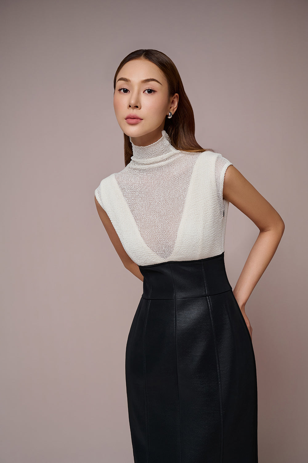 Confidently express yourself in the latest Yara Set from L'ALLÉE. A perfect combination of strong, sleek croptop blazer and fitted wool dress to ease down the look. Simple black and white set the tone for a richful, luxury vibe with the use of of wool, simili leather.